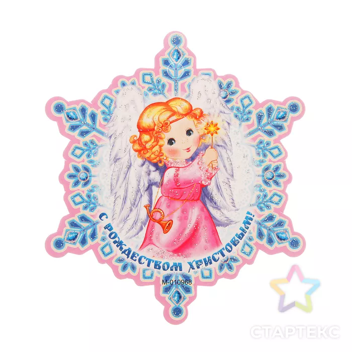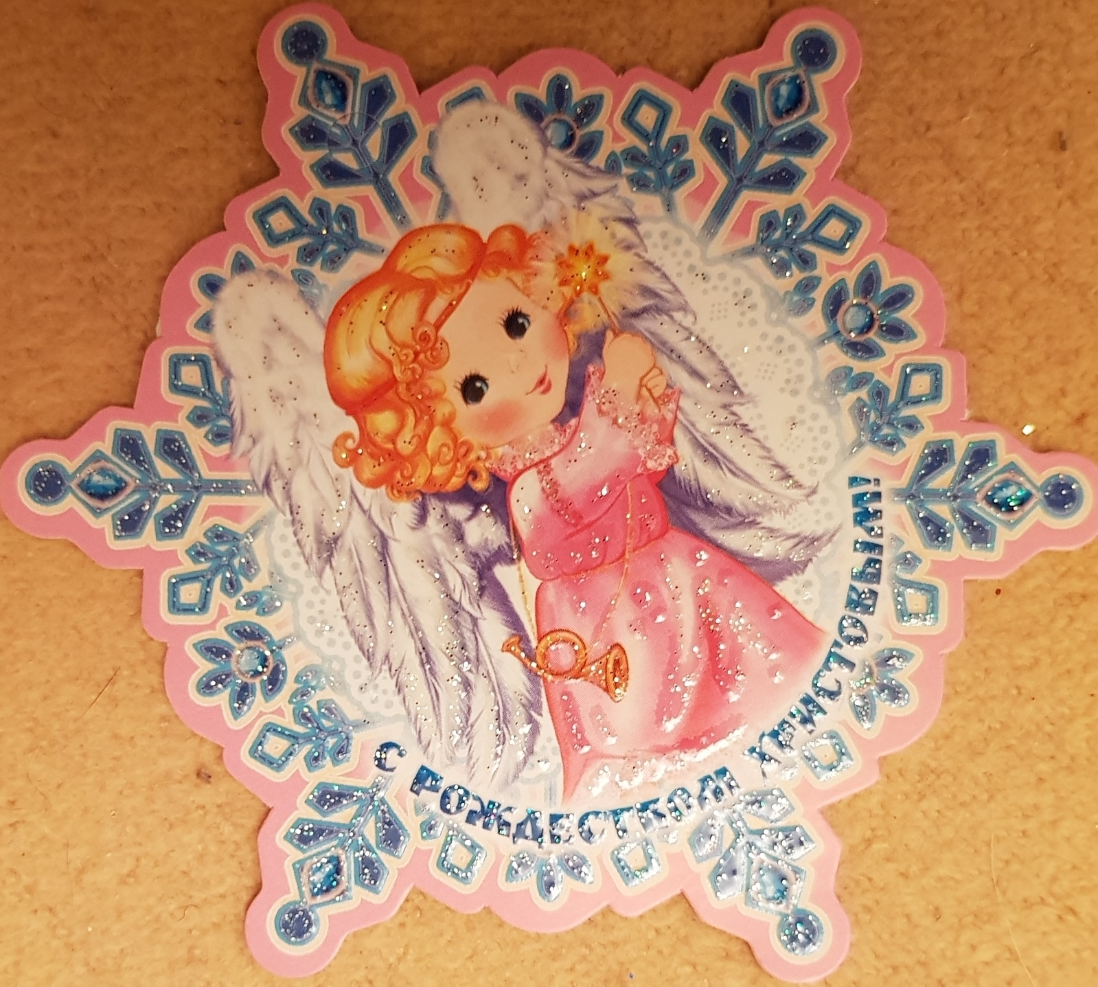 !09 Открытка-карточка (набор 10 штук) "С Рождеством Христовым!" Ангел со свечой 9x8 см.