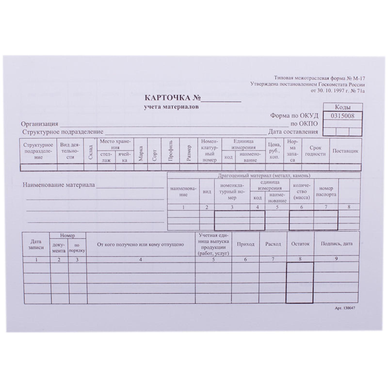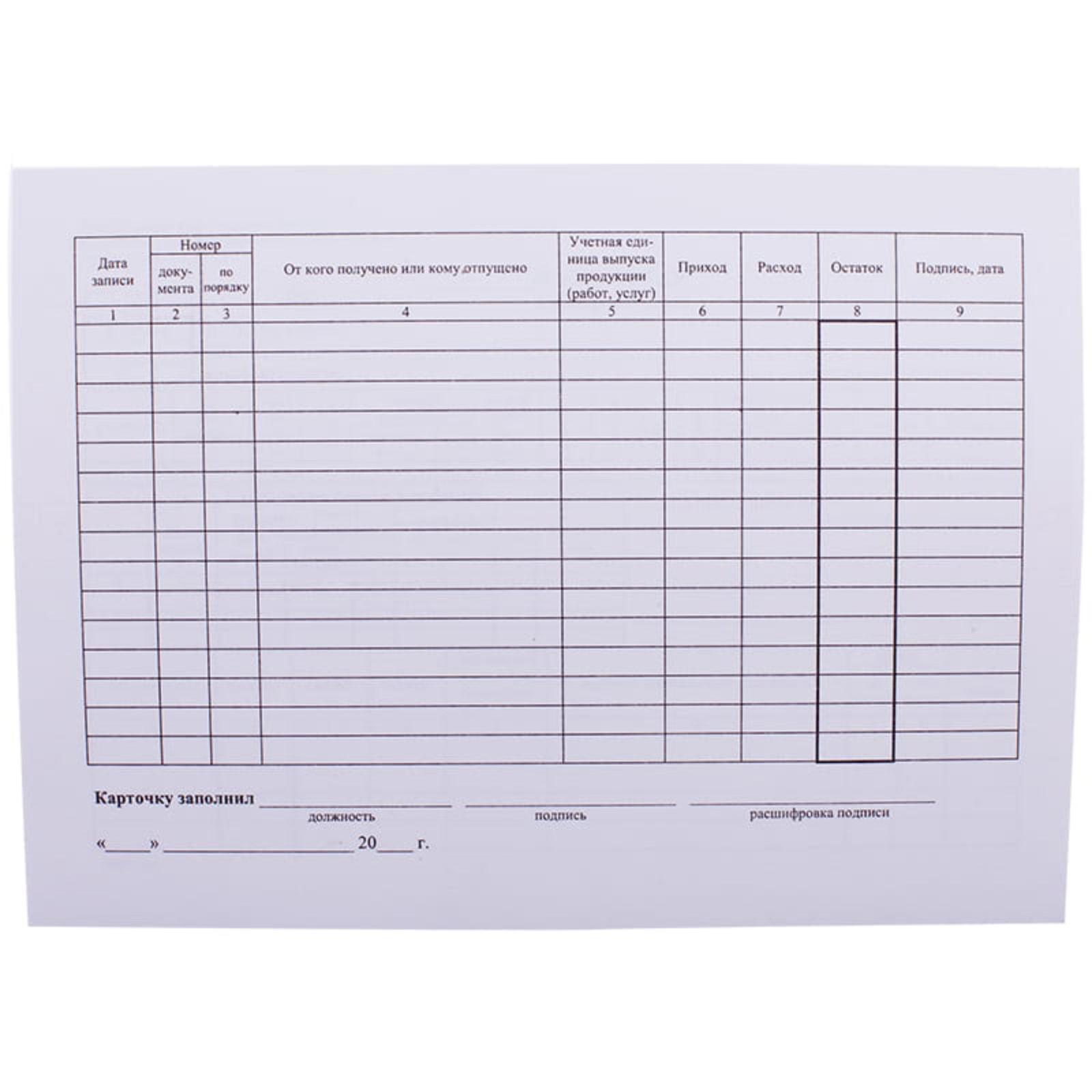 !09 Бланк "Карточка складского учета материалов" (набор 10 штук) А5 (форма М-17)