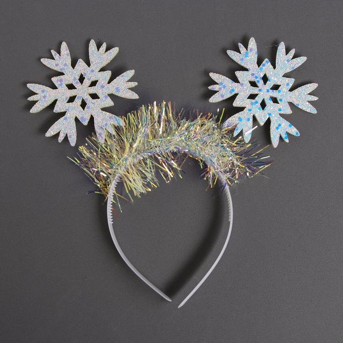 !09 НАБОР 3 ШТУКИ - Карнавальный ободок «Снежинка 2» с голубыми диодами микс + Карнавальный ободок 2 штуки «Снежинки»