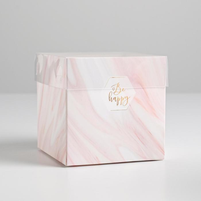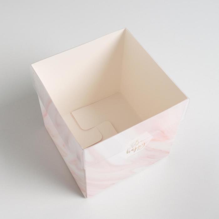 !09 НАБОР 4 ШТУКИ - Коробка для цветов с PVC‒крышкой "Be happy", 12 × 12 × 12 см.