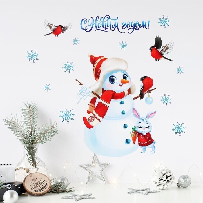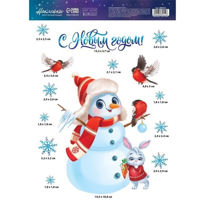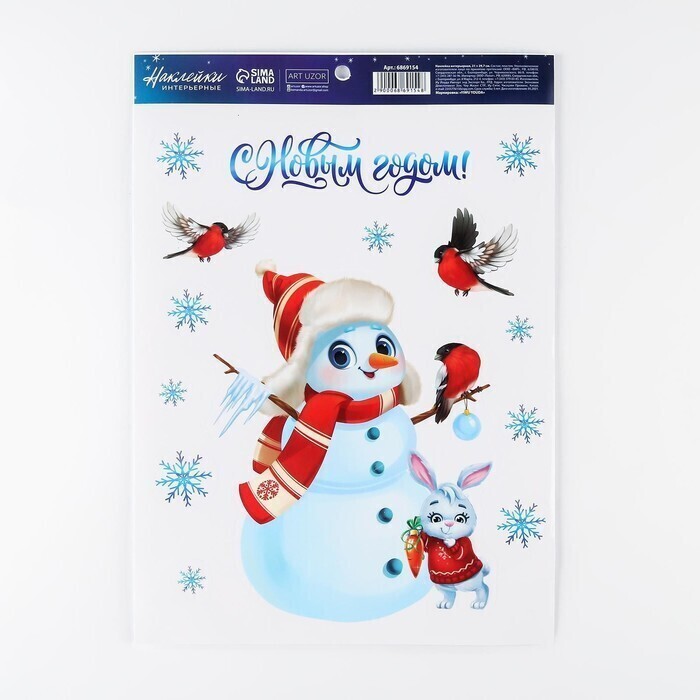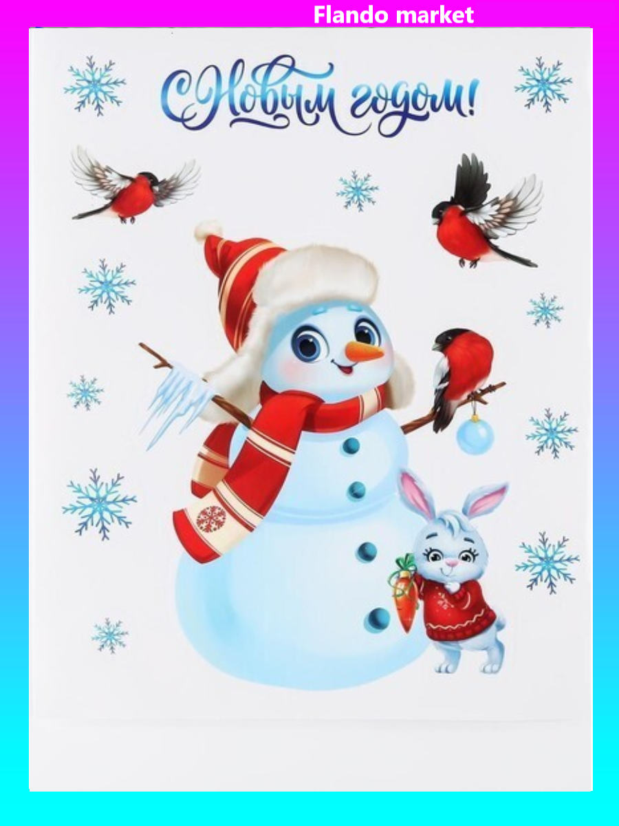 !09 НАБОР 3 ШТУКИ - Наклейка "Снеговик" 21*29.7 см.
