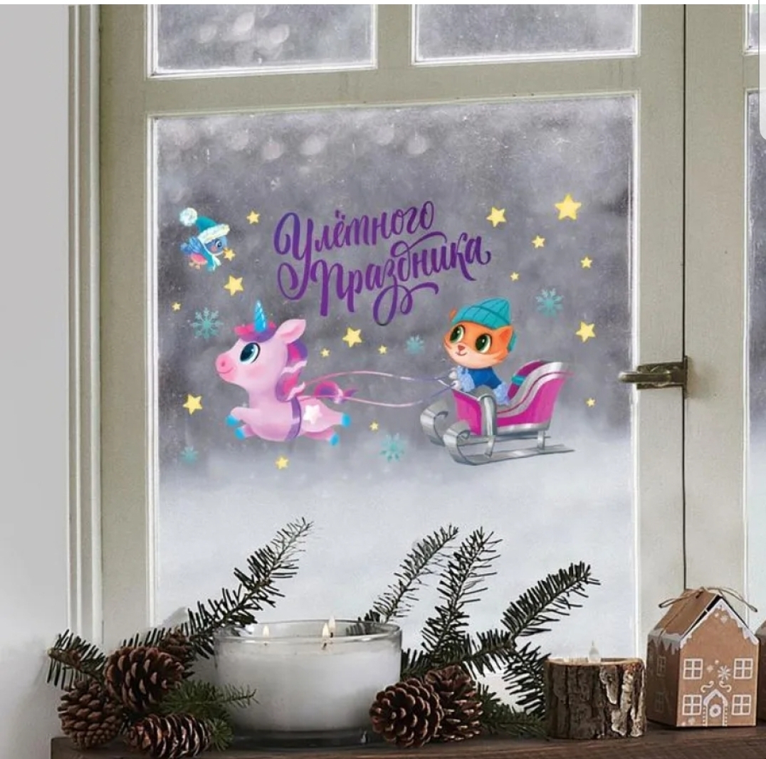 !09 НАБОР 2 ШТУКИ - Наклейки для окон "Улетного праздника" 20*34 см., многоразовые