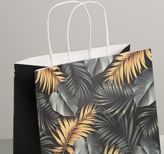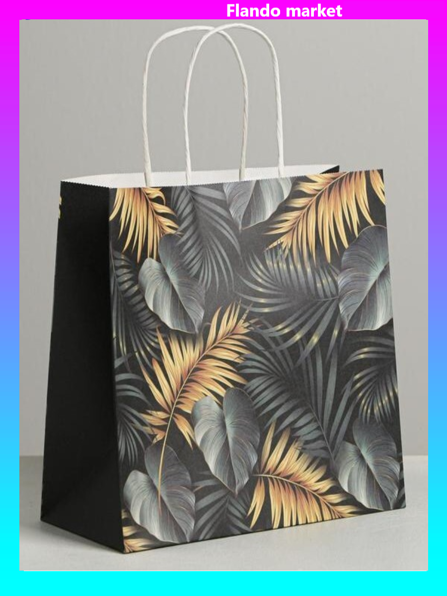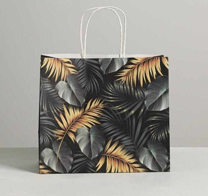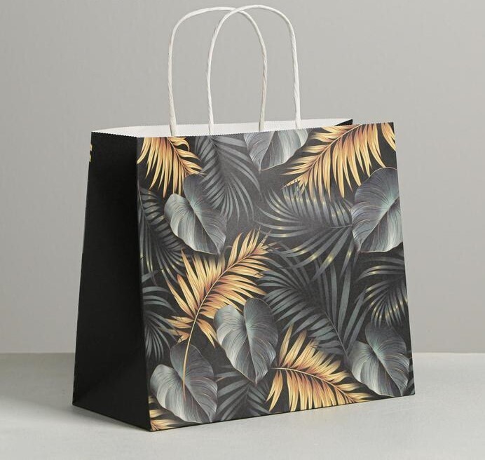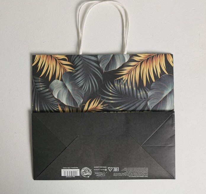 !09 НАБОР 4 ШТУКИ - Пакет подарочный крафтовый «Тропики», 25 × 22 × 12 см.