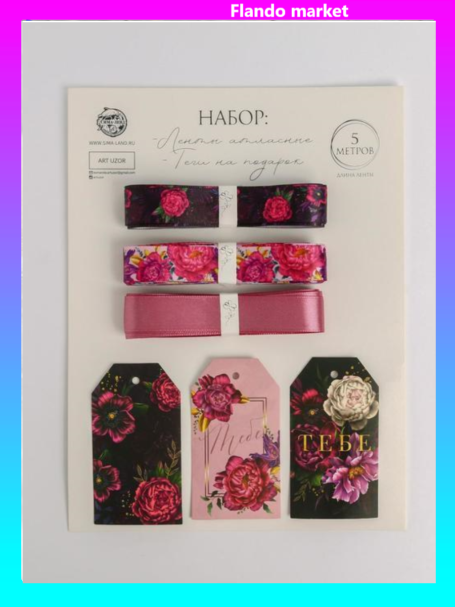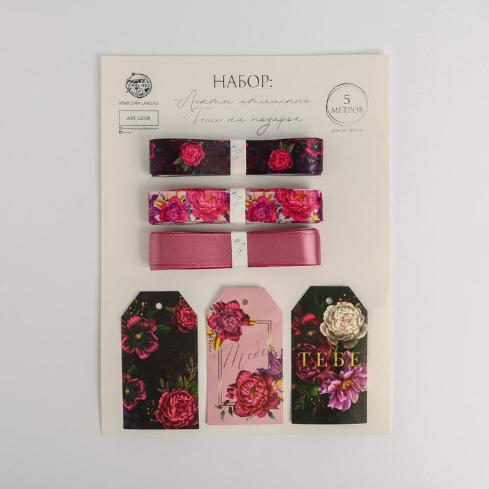 !09 Комплект из 2-х упаковок: 1 упаковка состоит из атласных лент «Бордо» 14 х 19 см, 3 вида ( по 5 метров) + 3 шильдика
