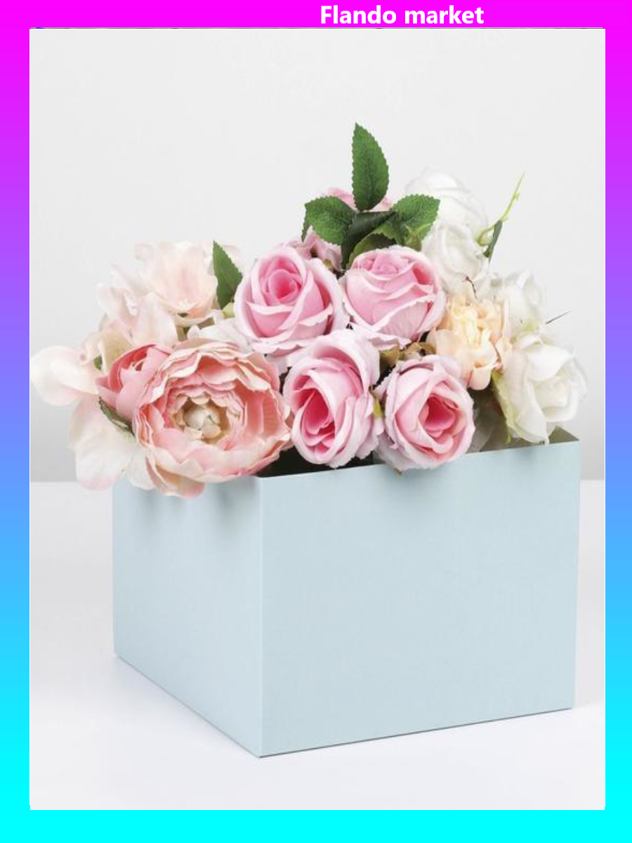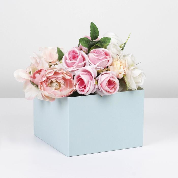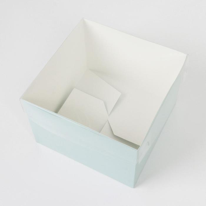 !09 Коробка для цветов (набор 3 штуки) с PVC крышкой, мятная, 17 х 17 х 12 см.