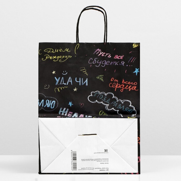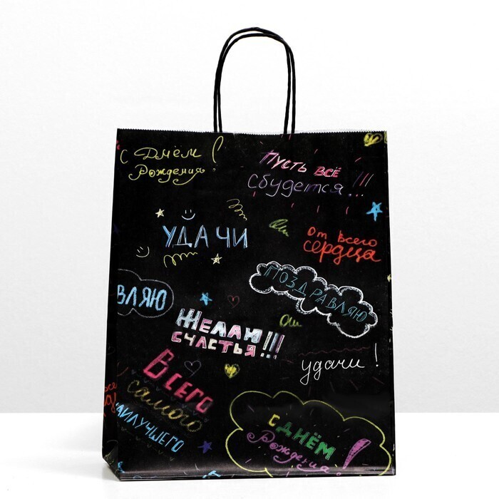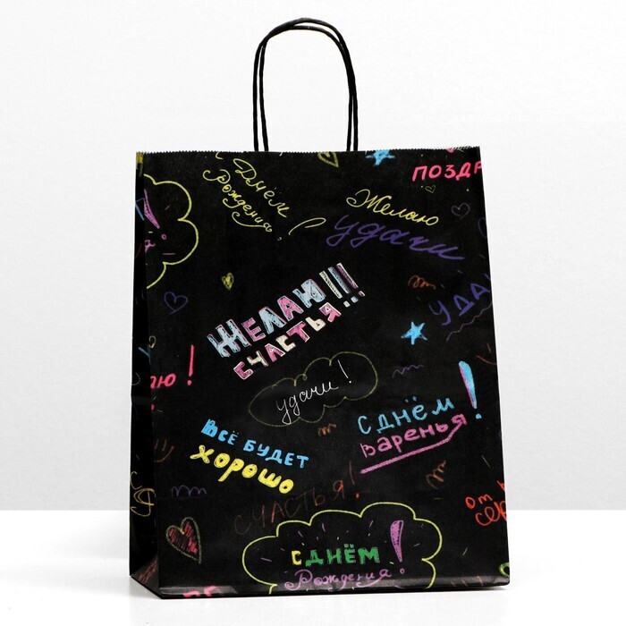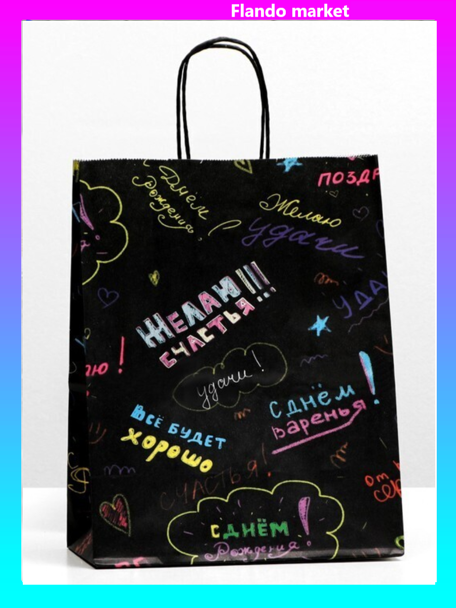 !09 НАБОР 4 ШТУКИ - Пакет крафт "Пожелания", крученая ручка 22 х 12 х 27 см.