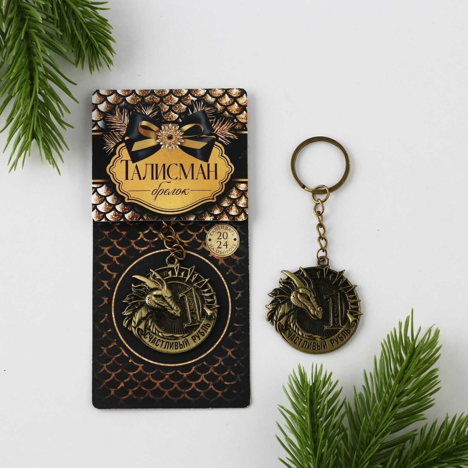 !09 Набор брелков(2 штуки):Брелок «Счастливый рубль» + брелок "Приношу удачу" d 4 см.