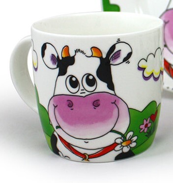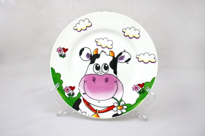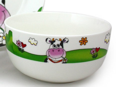 !09 Набор детской посуды "Веселая коровка" 3 предмета: кружка, тарелка, салатник