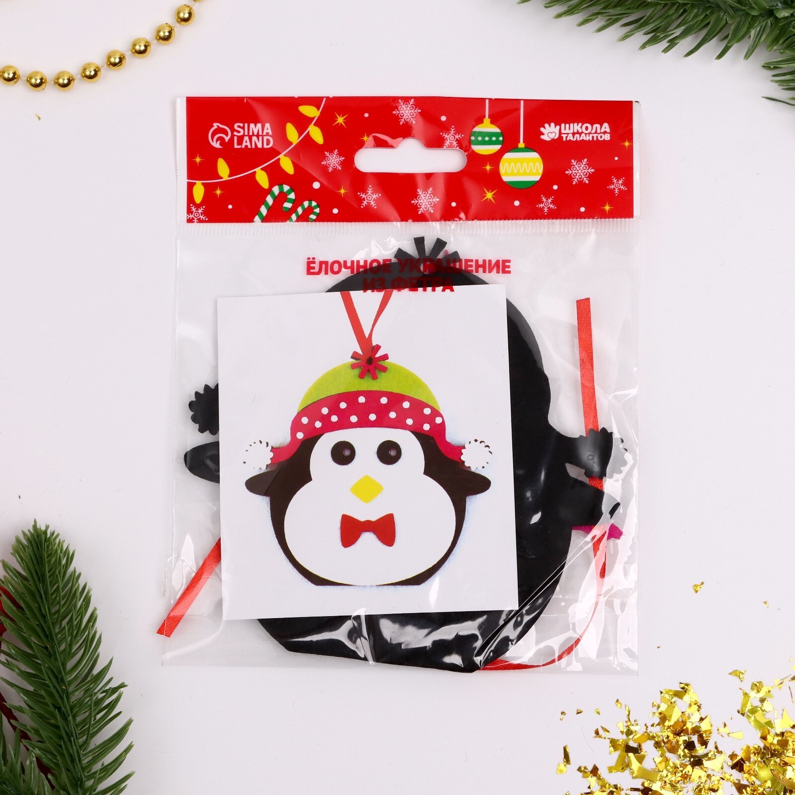 !09 Комплект из 5 наборов - Ёлочная игрушка из фетра «Пингвин в шапочке», набор для творчества, своими руками
