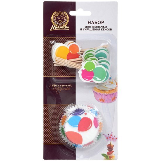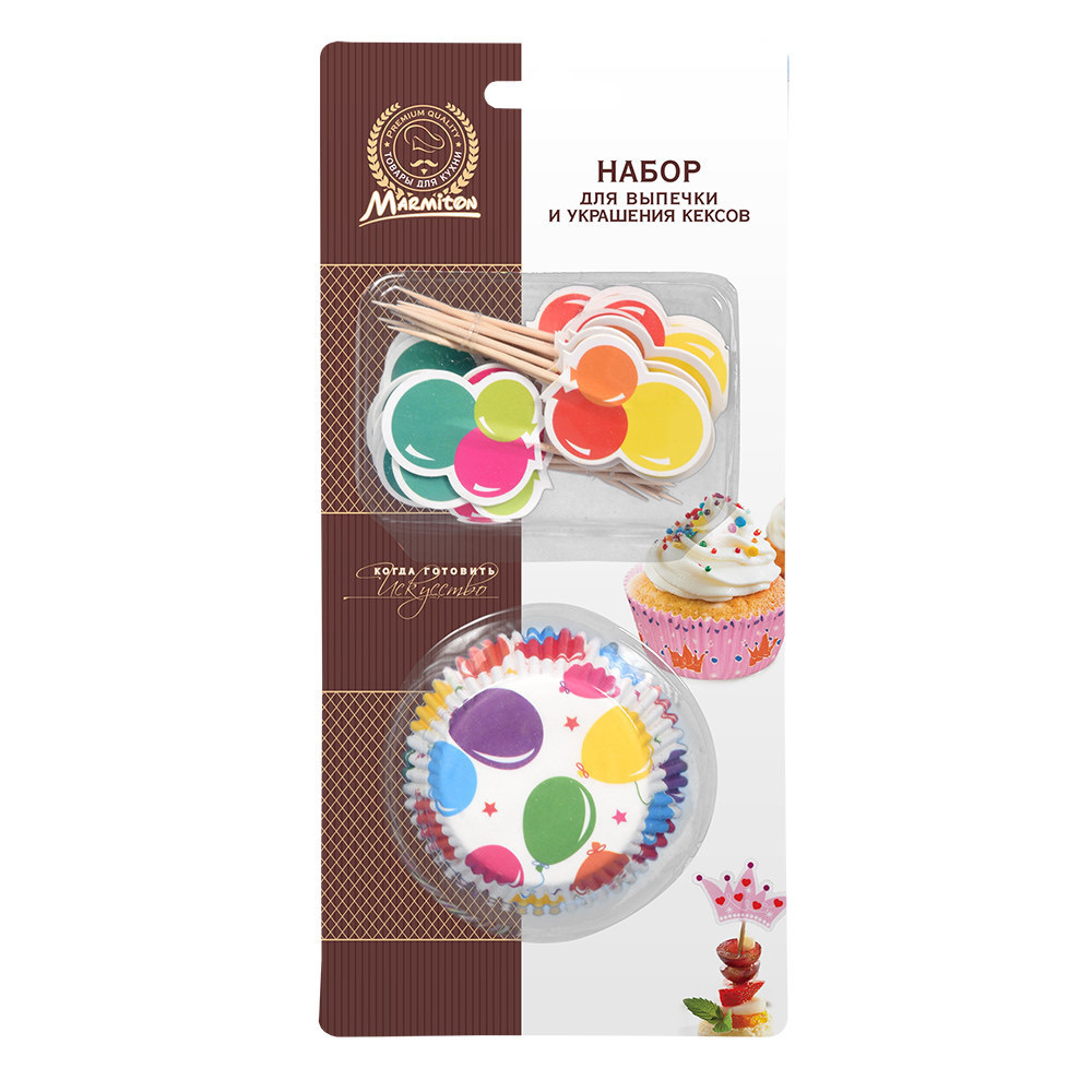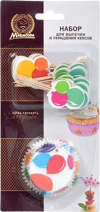 !09 Набор для выпечки и украшения кексов "Шары" 24 формочки 7/5*3см+24 шпажки 7см