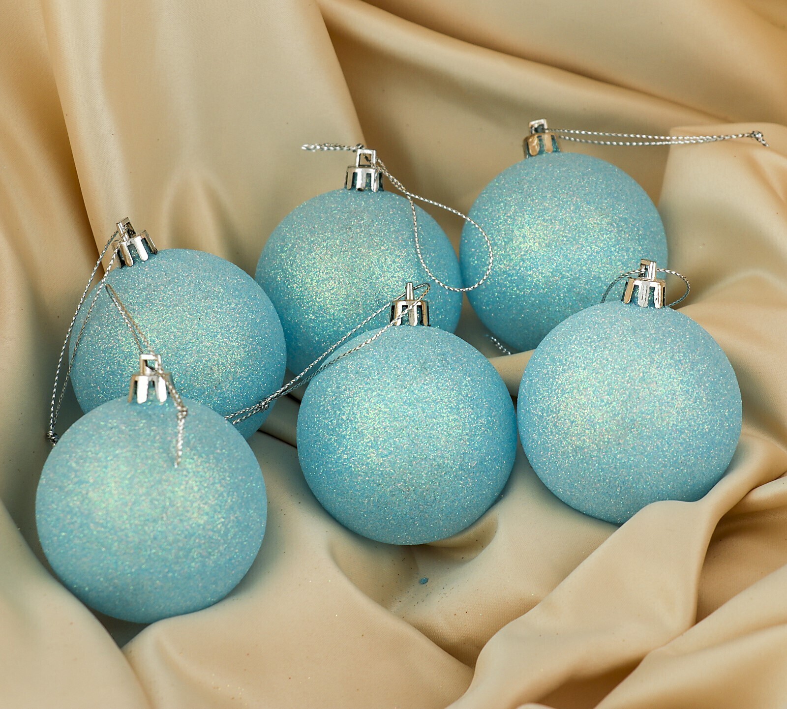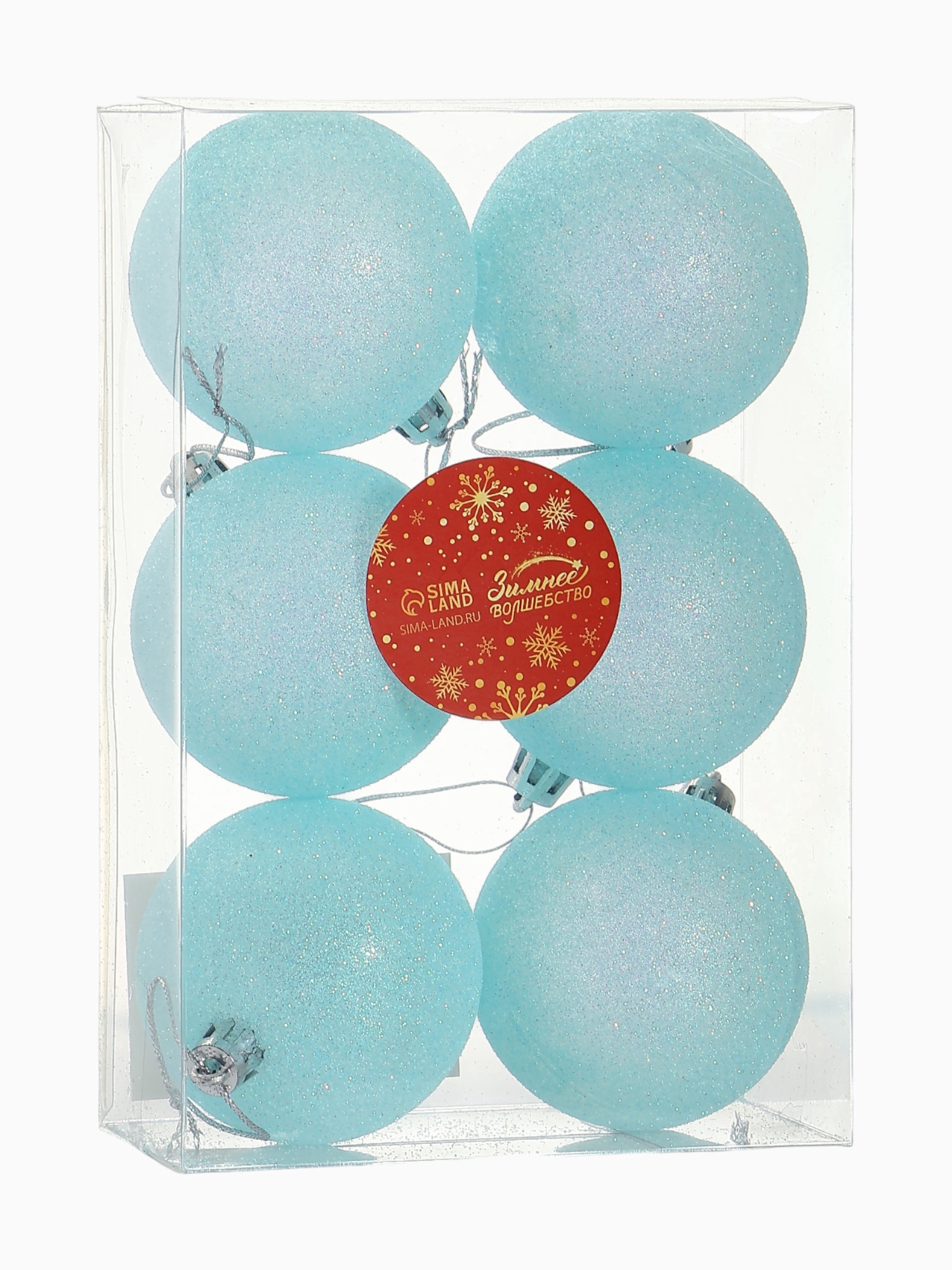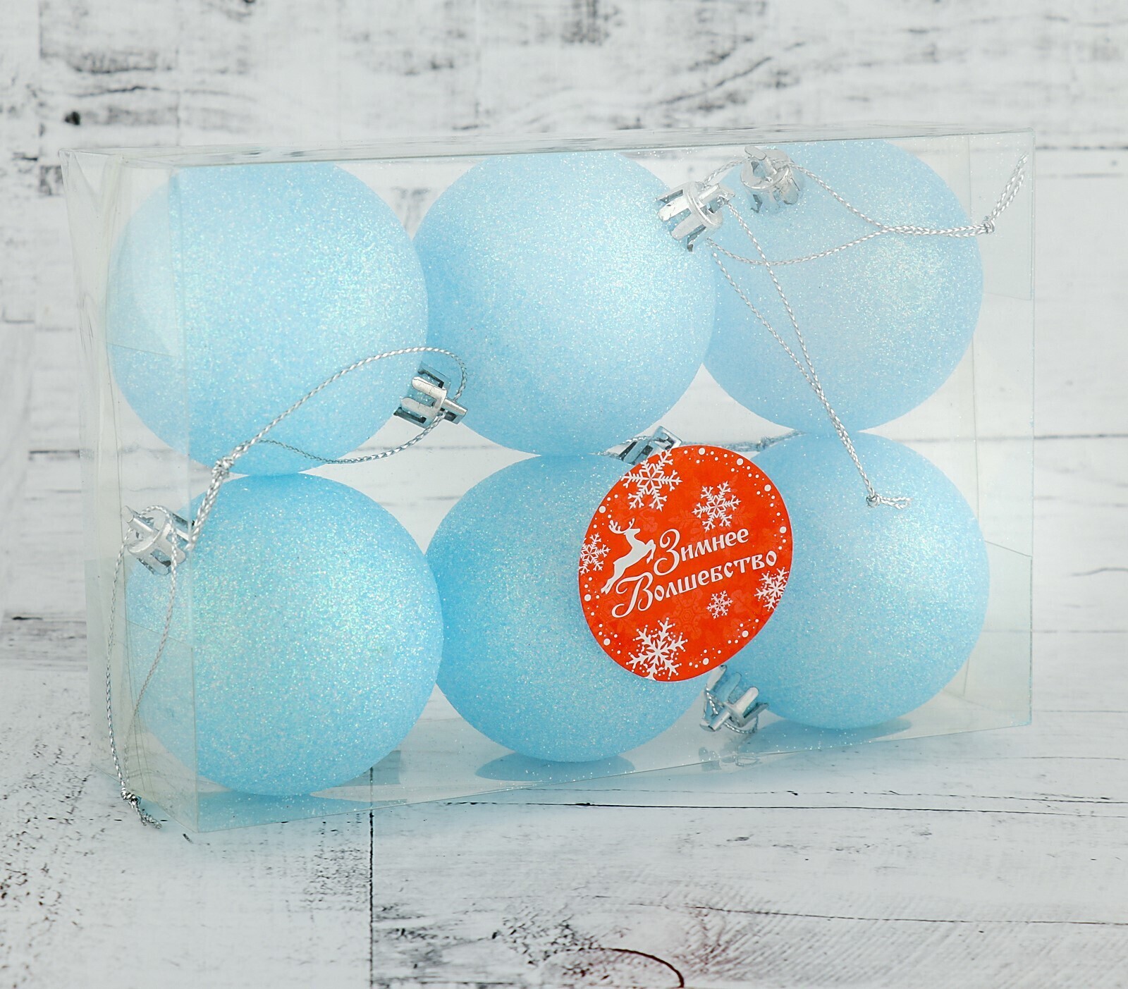!09 Набор елочных игрушек 6 штук «Блеск», шары новогодние, d=6 см, цвет голубой