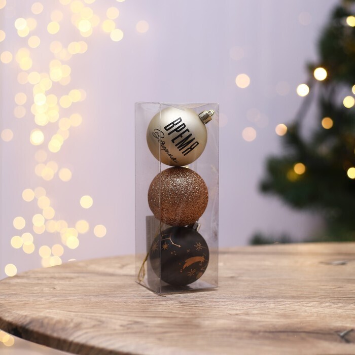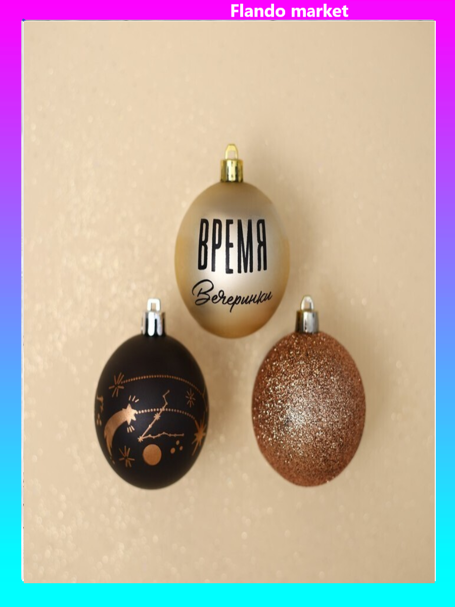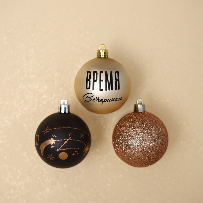 !09 Набор елочных игрушек 3 штук «Время вечеринки!», шары новогодние, d=6 см. цвет черный и жемчужный