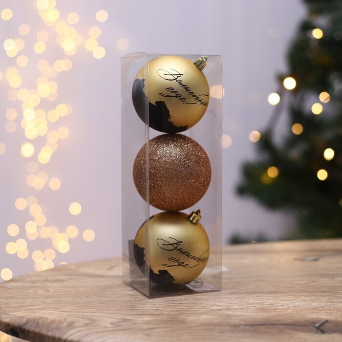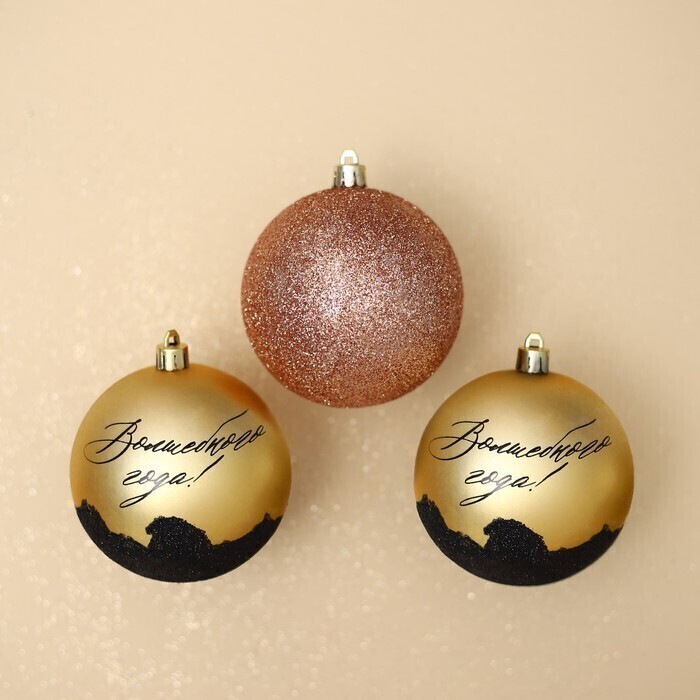 !09 Набор елочных игрушек 6 штук «Волшебного года», шары новогодние, d=8 см. цвет золото