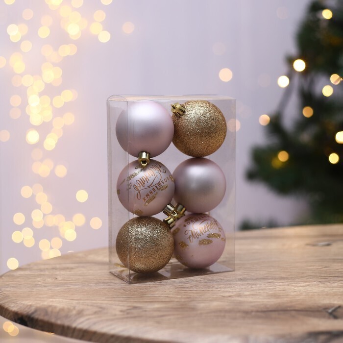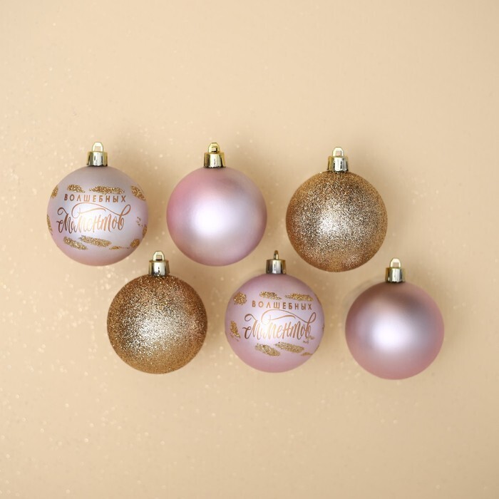 !09 Набор елочных игрушек 12 штук «Волшебных моментов», шары новогодние, d=6 см. цвет розовое золото