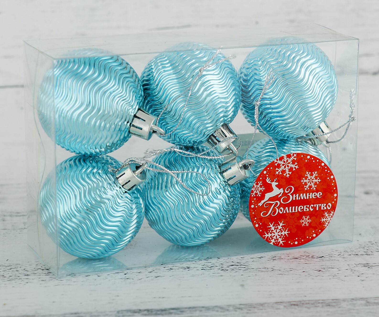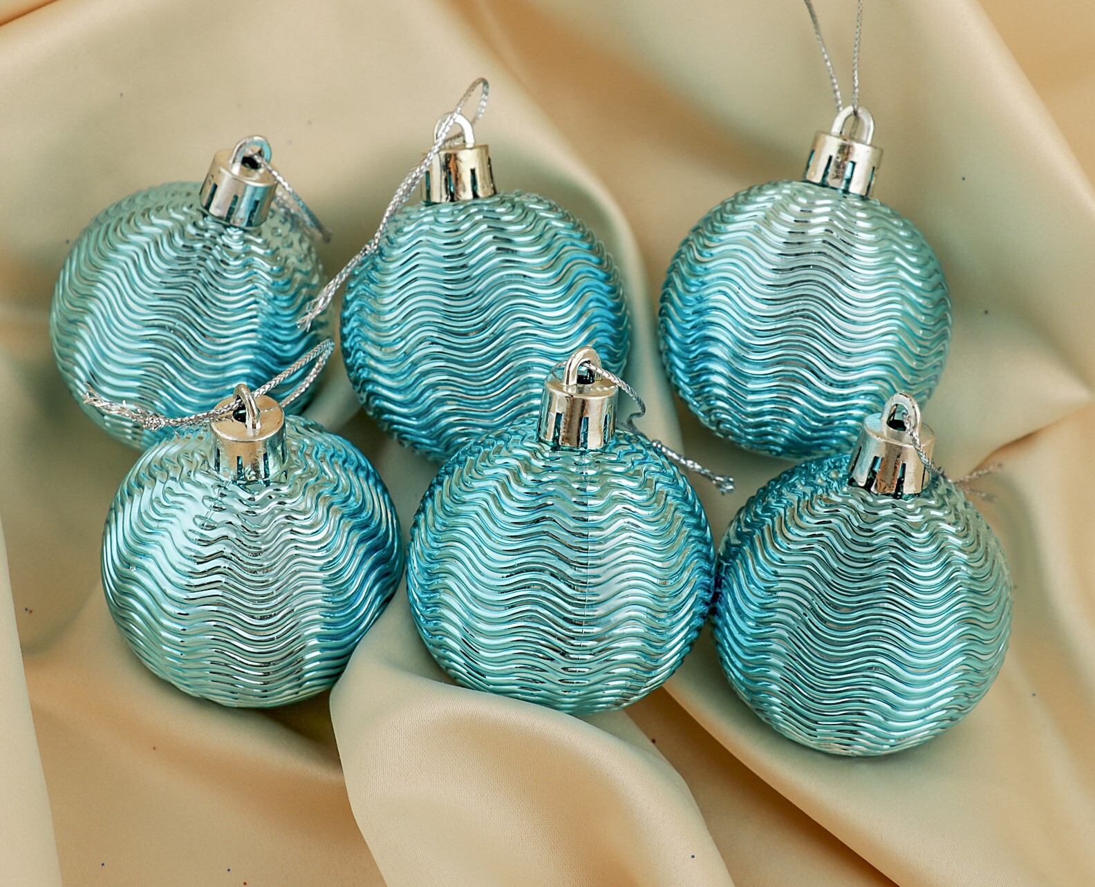 !09 Набор елочных игрушек 6 штук «Волна», шары новогодние, d=5 см. цвет бирюзовый