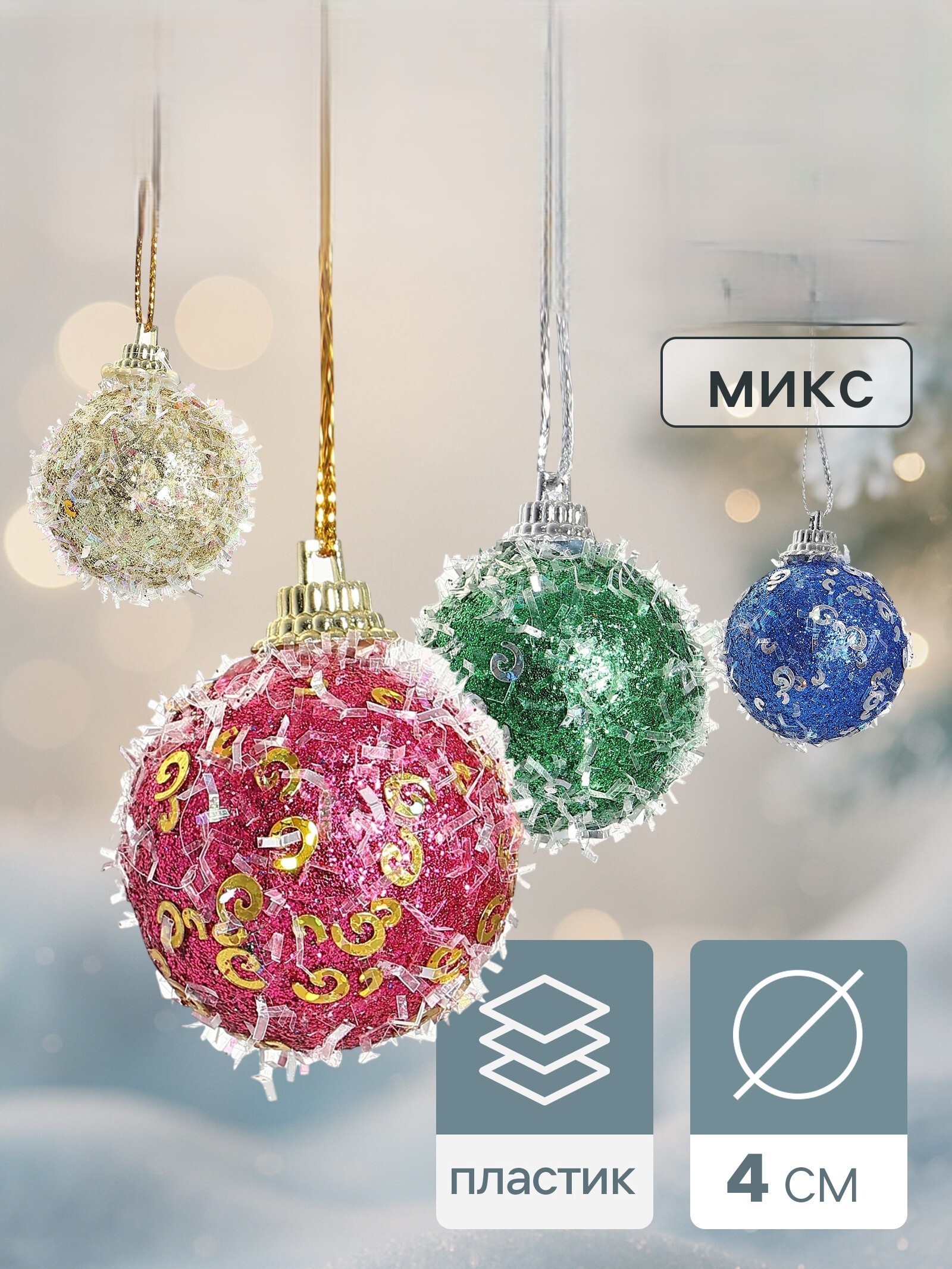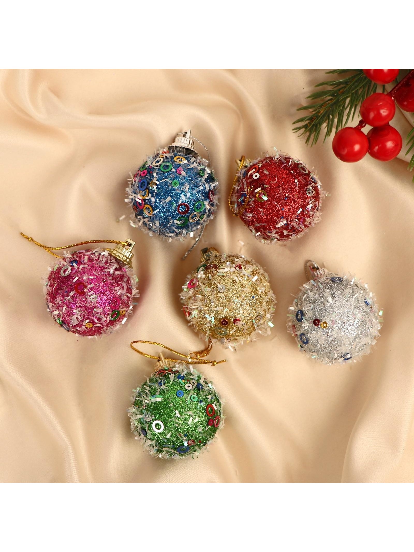 !09 Набор елочных игрушек 12 штук"Пайетка", шары новогодние, d=4 см. цвет микс
