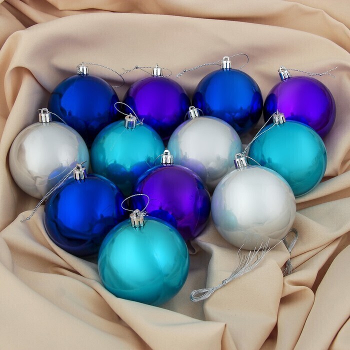 !09 Набор елочных игрушек - Набор шаров пластик d-8 см, 12 шт "Глянец" серебристо-синий микс