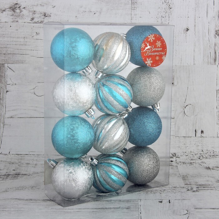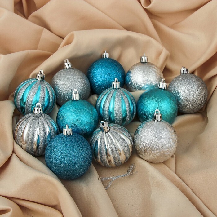 !09 Набор елочных игрушек - Ёлочные игрушки «Праздничный салют», шары новогодние, d=6 см, набор 12 шт., серебристо-синий