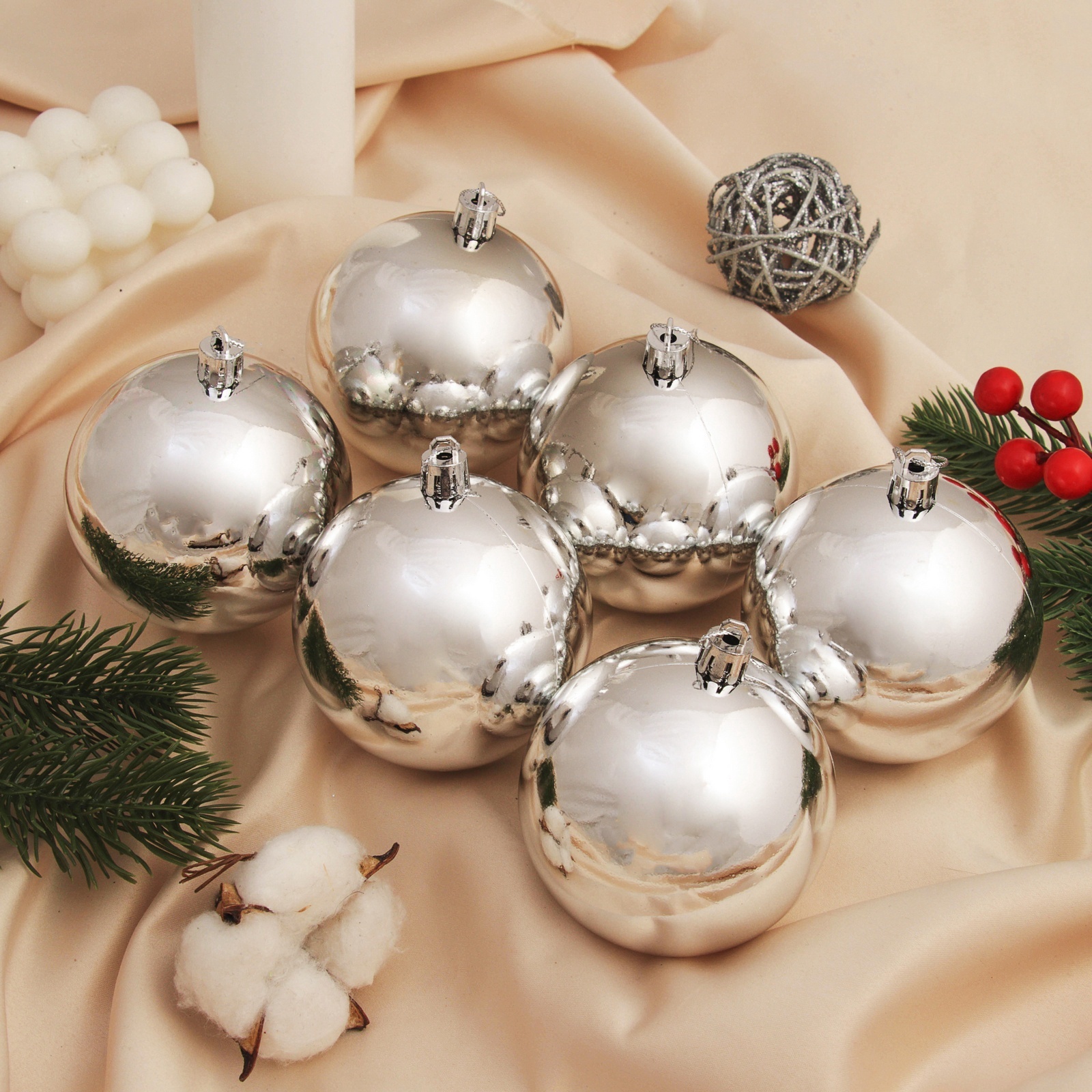 !09 Набор елочных игрушек(12 штук): Ёлочные игрушки "Винтажный глянец" d=8 см, цвет серебристый