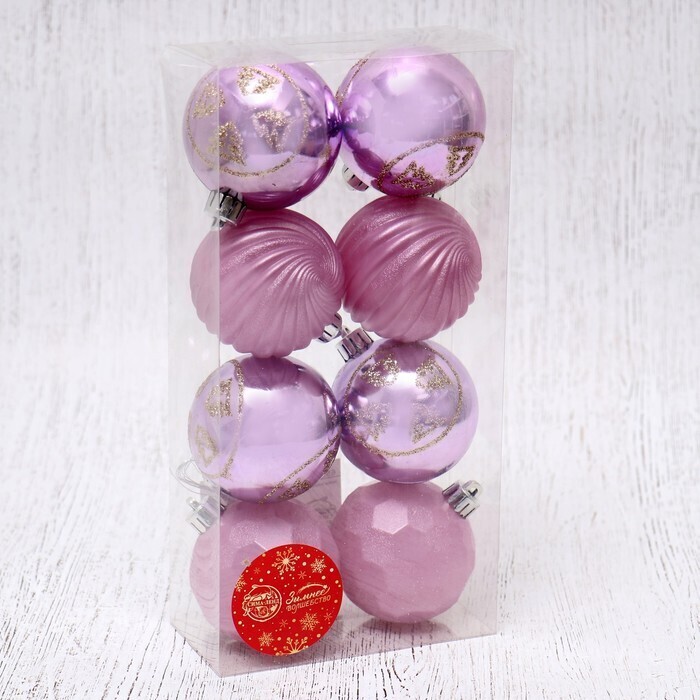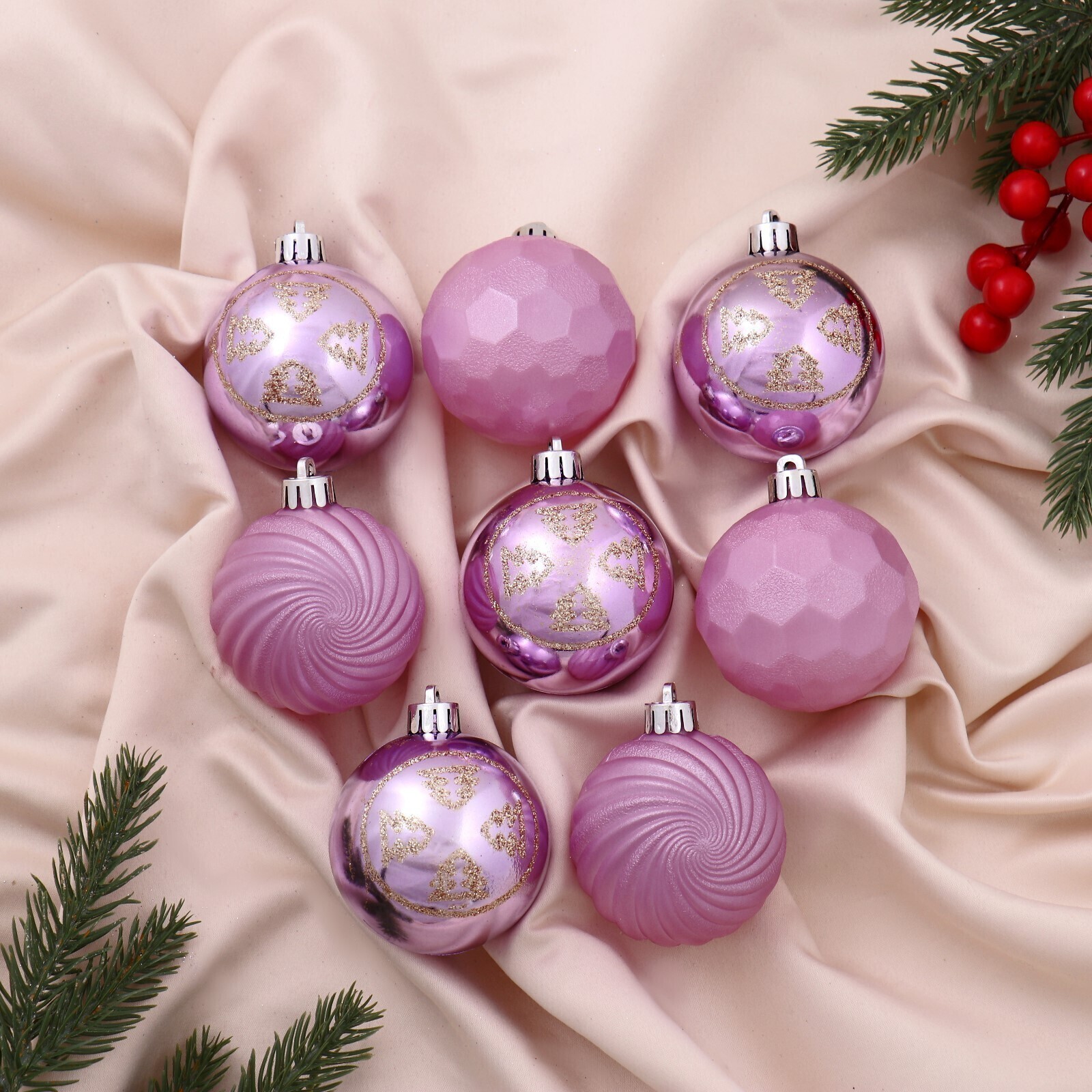 !09 Набор елочных игрушек(8 штук): Ёлочные игрушки "Шанталь" d=6 см,цвет розовый микс
