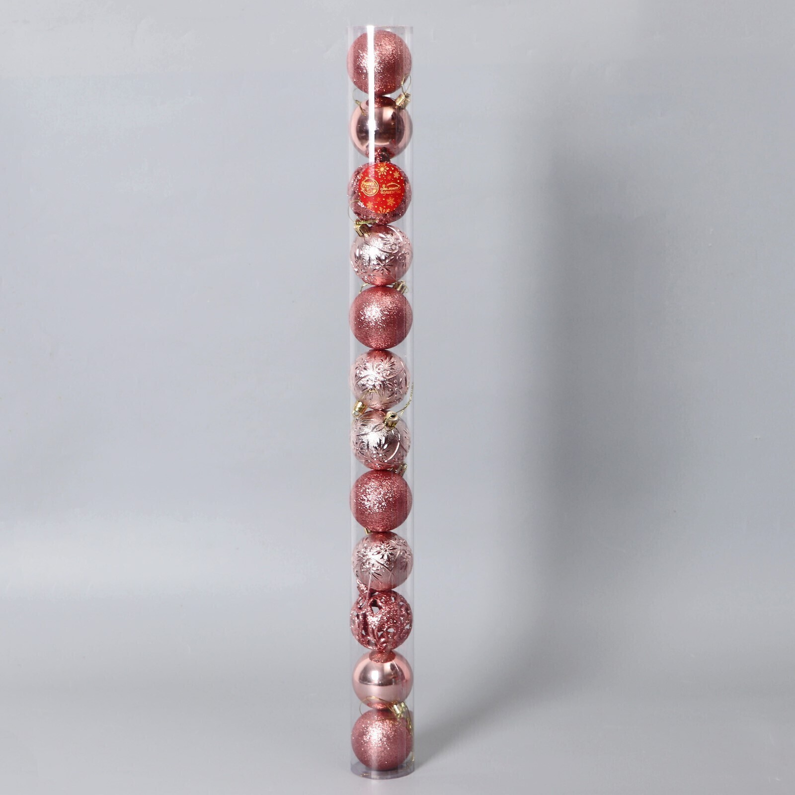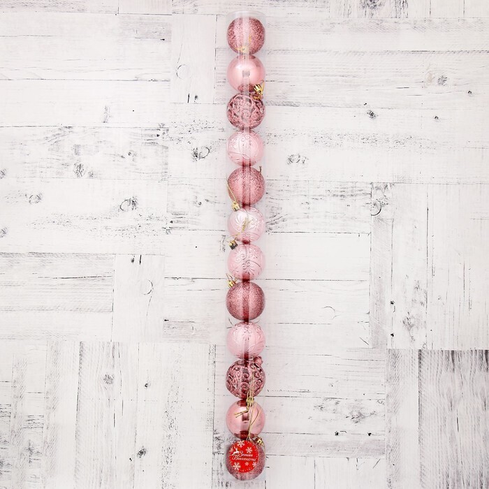 !09 Набор елочных шаров 24 штуки пластик d-6 см. "Лилиан" , цвет розовый дизайн микс