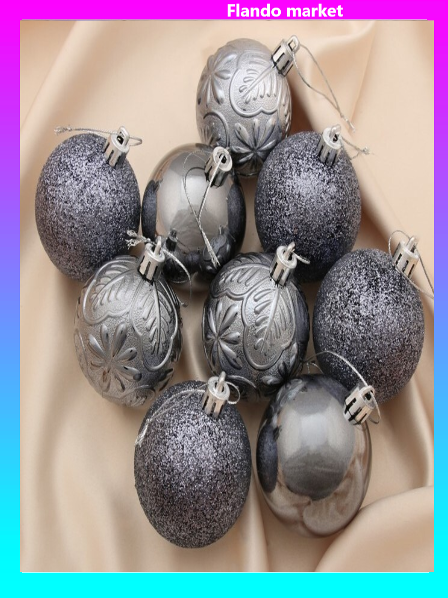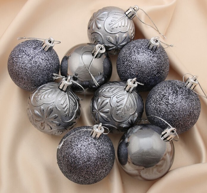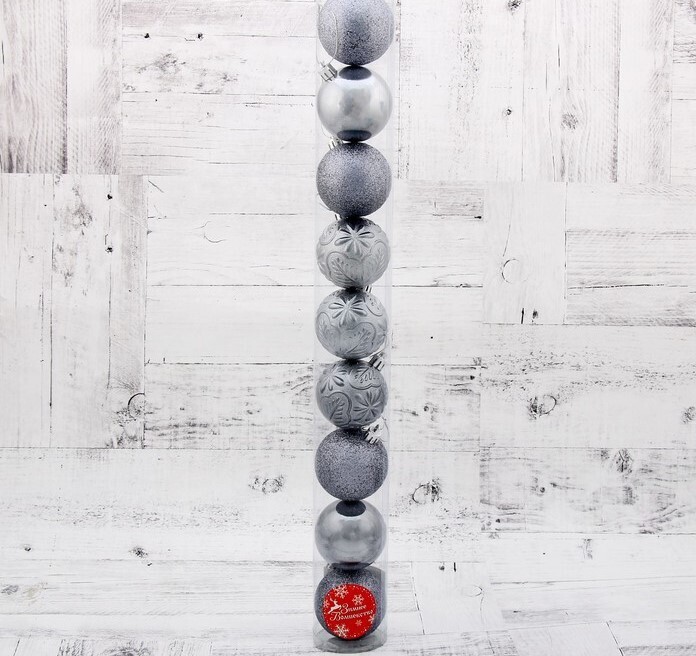 !09 Набор елочных шаров 9 штук пластик d-6 см. "Сильва" , цвет серебристо серый дизайн микс