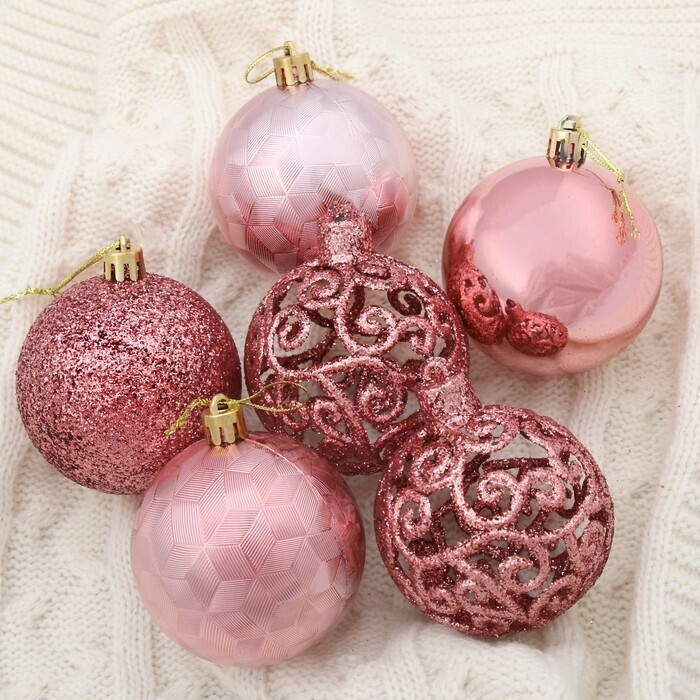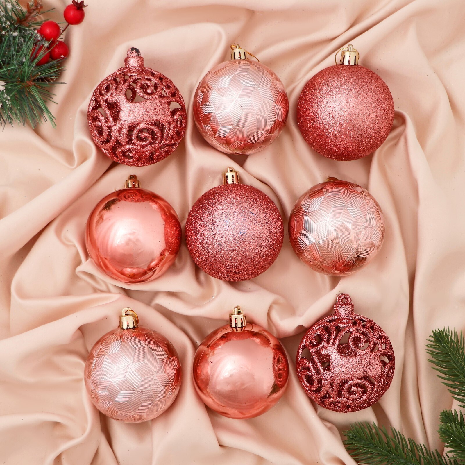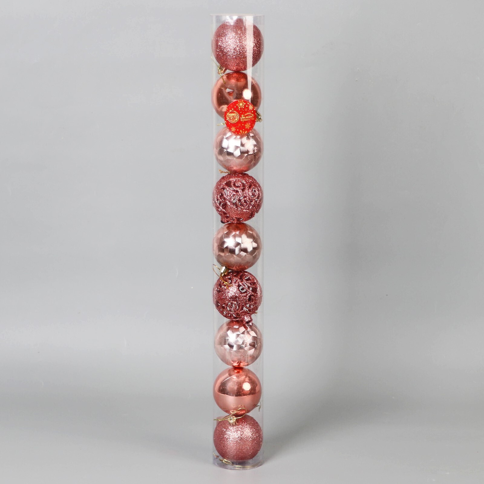 !09 Набор елочных шаров 9 штук пластик d-7 см. "Камилла" , цвет розовый дизайн микс