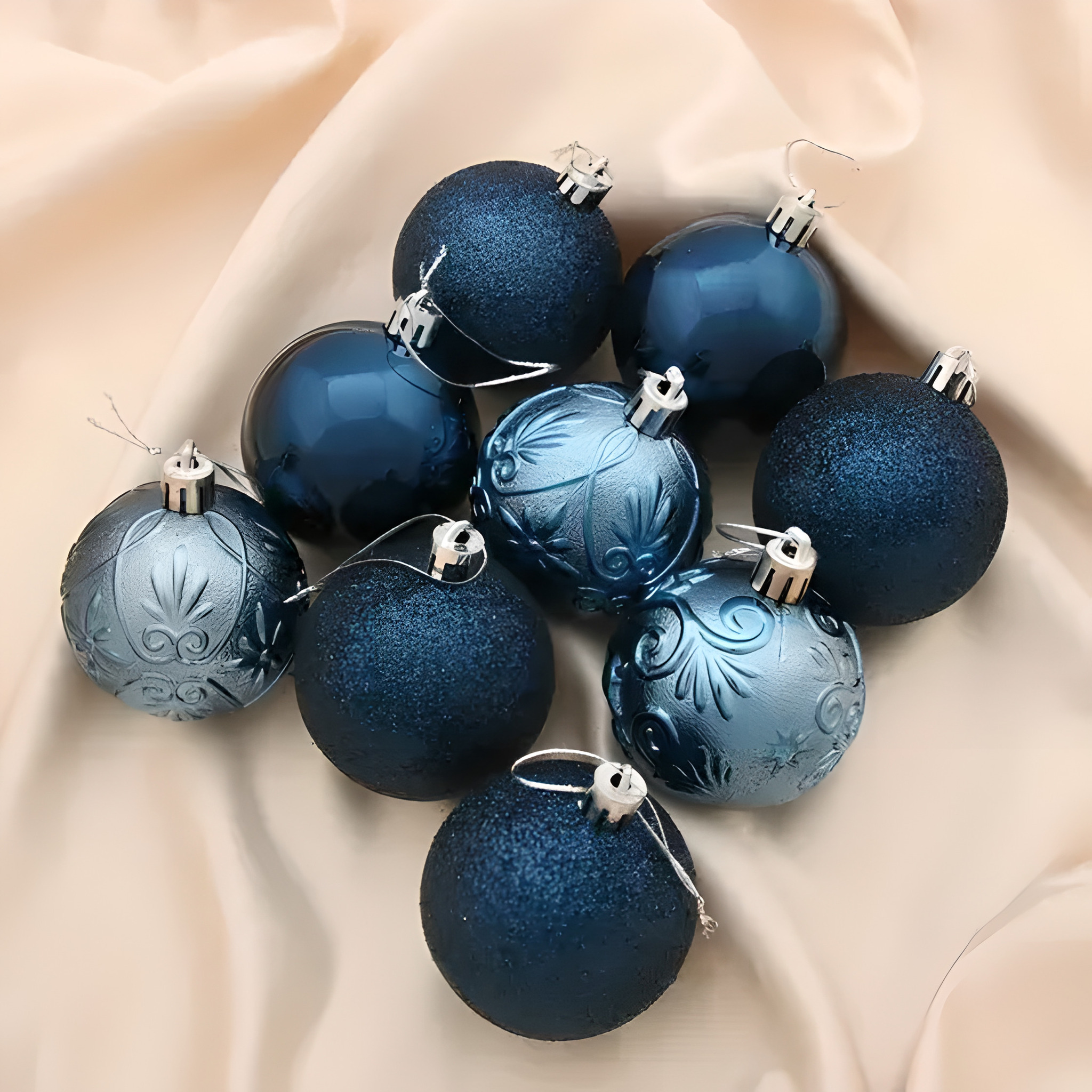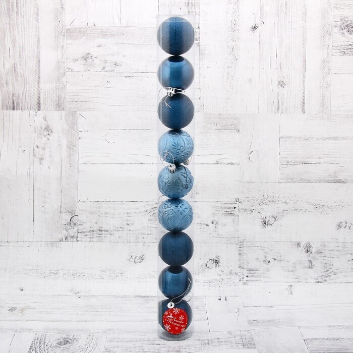 !09 Набор елочных шаров 9 штук пластик d-6 см. "Лилиан" , цвет синий дизайн микс