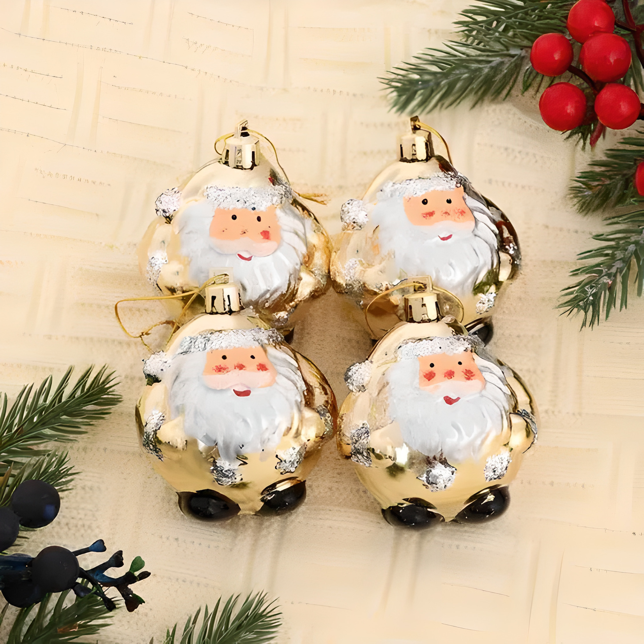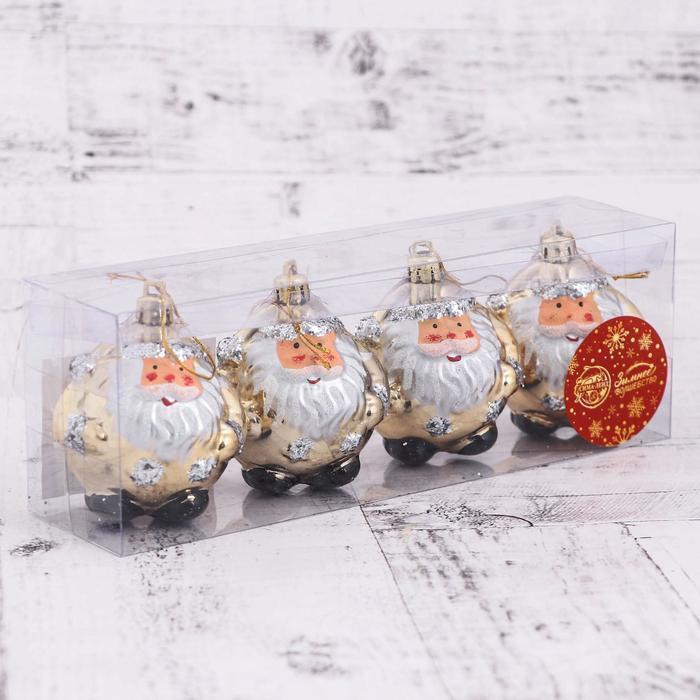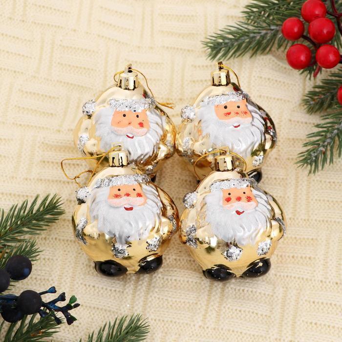 !09 Набор елочных украшений "Дед Мороз - толстячок" 6х6,5 см (набор 4 штуки) цвет золотой
