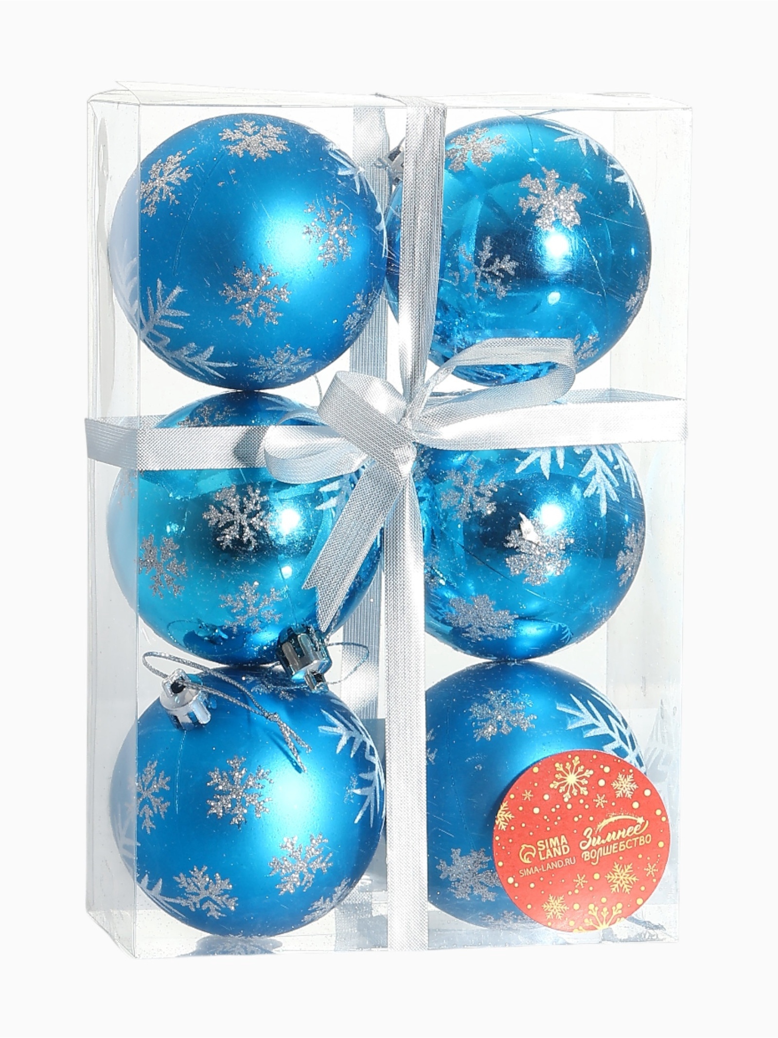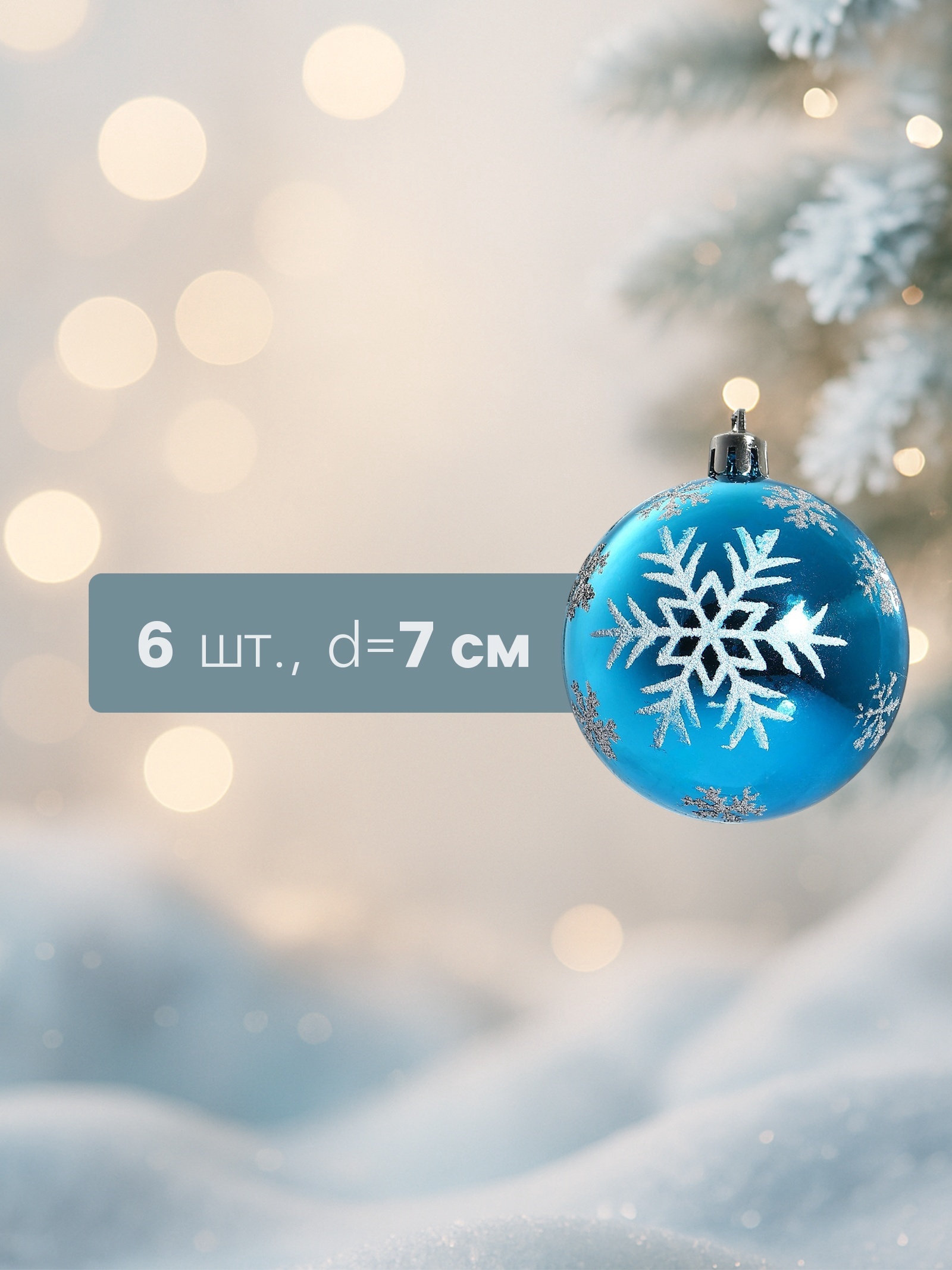 !09 Набор елочных шаров (набор 6 штук) «Снегопад» d=7 см, цвет голубой