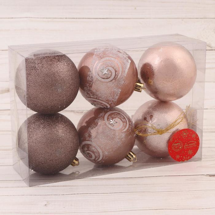 !09 Набор елочных шаров (набор 6 штук) "Шоколадная сказка", d=8 см, цвет коричнево-золотой