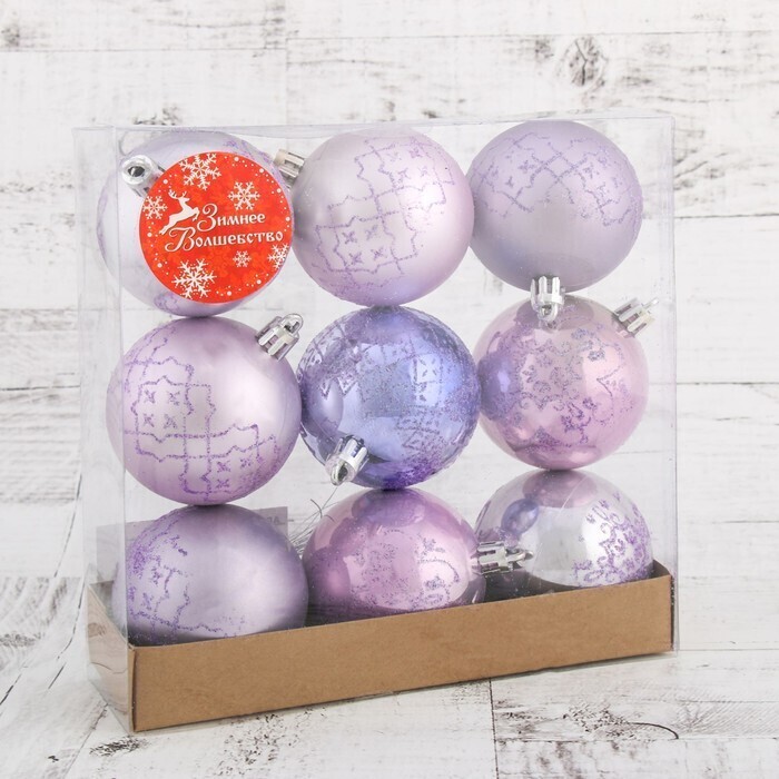 !09 Набор елочных шаров (набор 9 штук) «Перламутровое сияние» d=6 см, цвет сиреневый