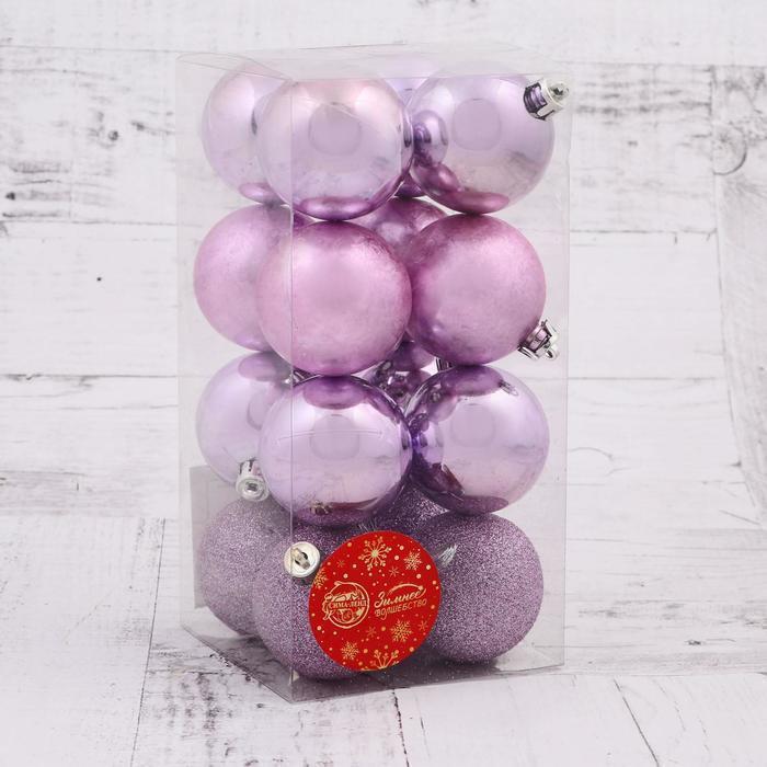 !09 Набор елочных шаров (набор 16 штук) «Морозный туман» d=5 см, цвет сиреневый