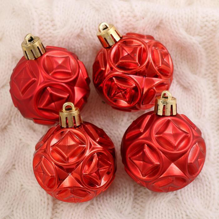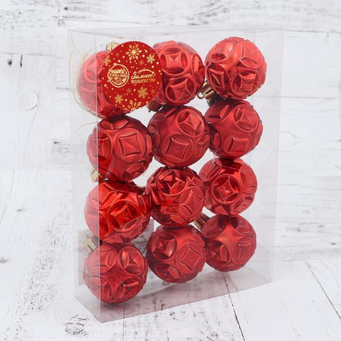 !09 Набор елочных шаров (набор 12 штук) «Мидас - геометрия », d=5 см, цвет красный