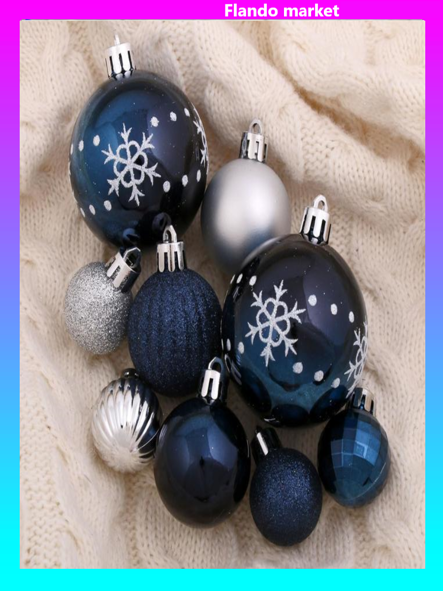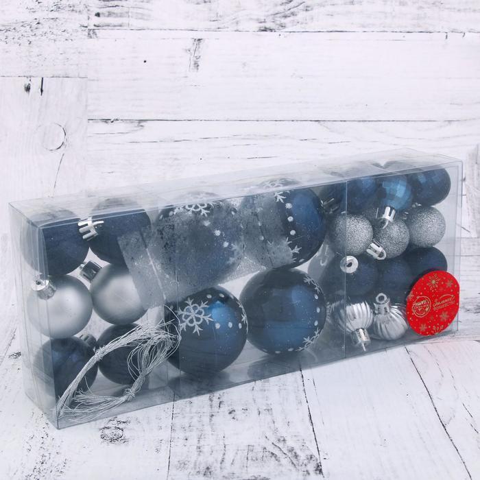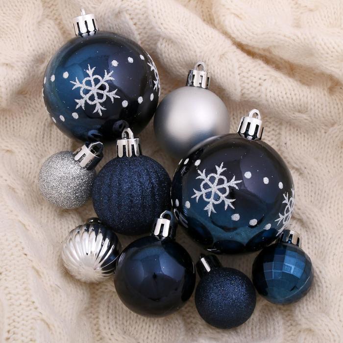 !09 Набор елочных шаров (набор 34 штуки) "Ночные снежинки" пластик d-3 см. d-4 см. d-6 см. цвет серебристо-синий