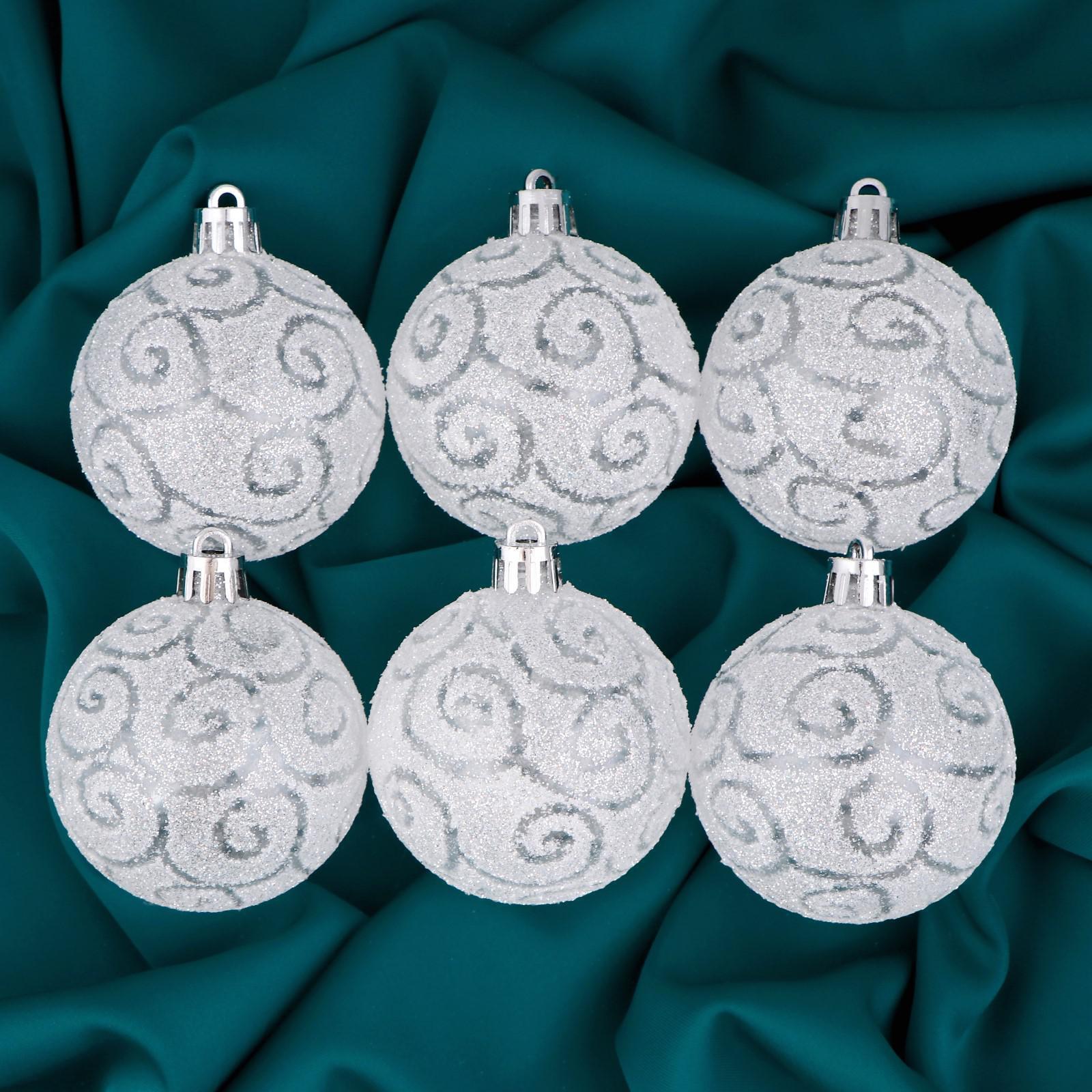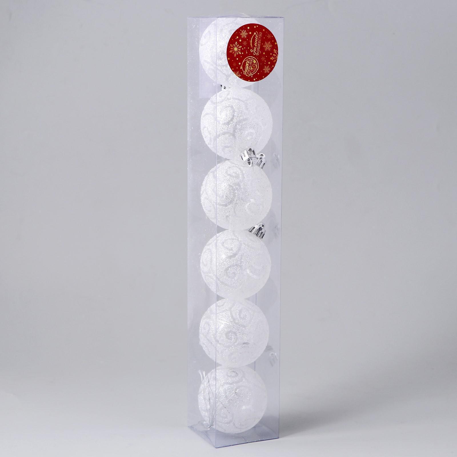 !09 Набор елочных шаров (набор 5 штук) "Волшебные узоры", d=6 см, цвет белый