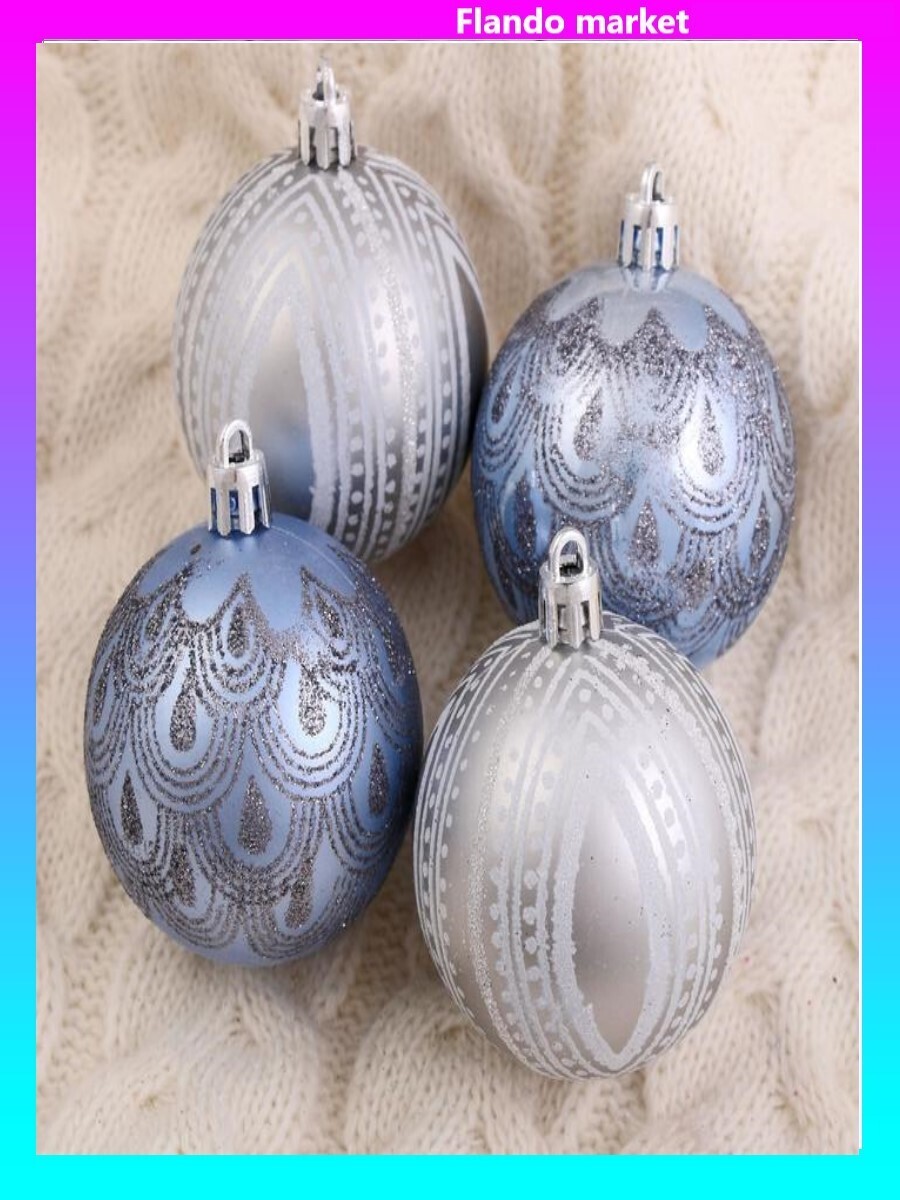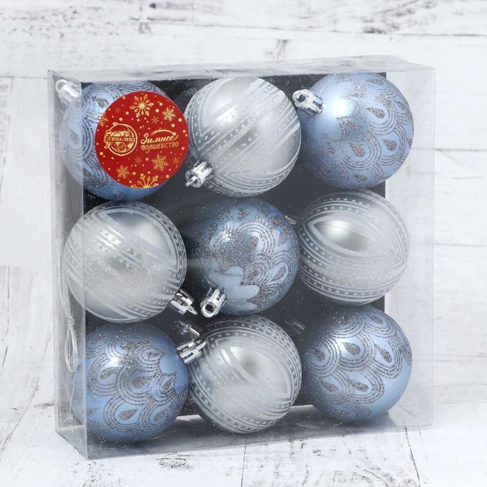 !09 Набор елочных шаров (набор 9 штук) "Загадочный узор", d=6 см, цвет серебристый/голубой