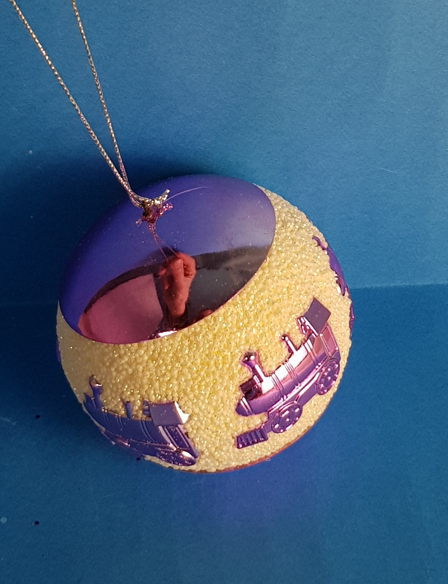 !09 Набор елочных шаров (набор 3 штуки) "Паровозик", d=8 см, цвет сиреневый