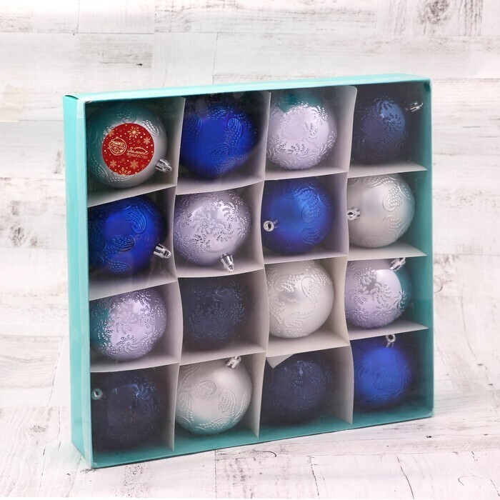 !09 Набор елочных шаров (набор 16 штук) "Зимняя тайна" пластик d-7,5 см. цвет микс
