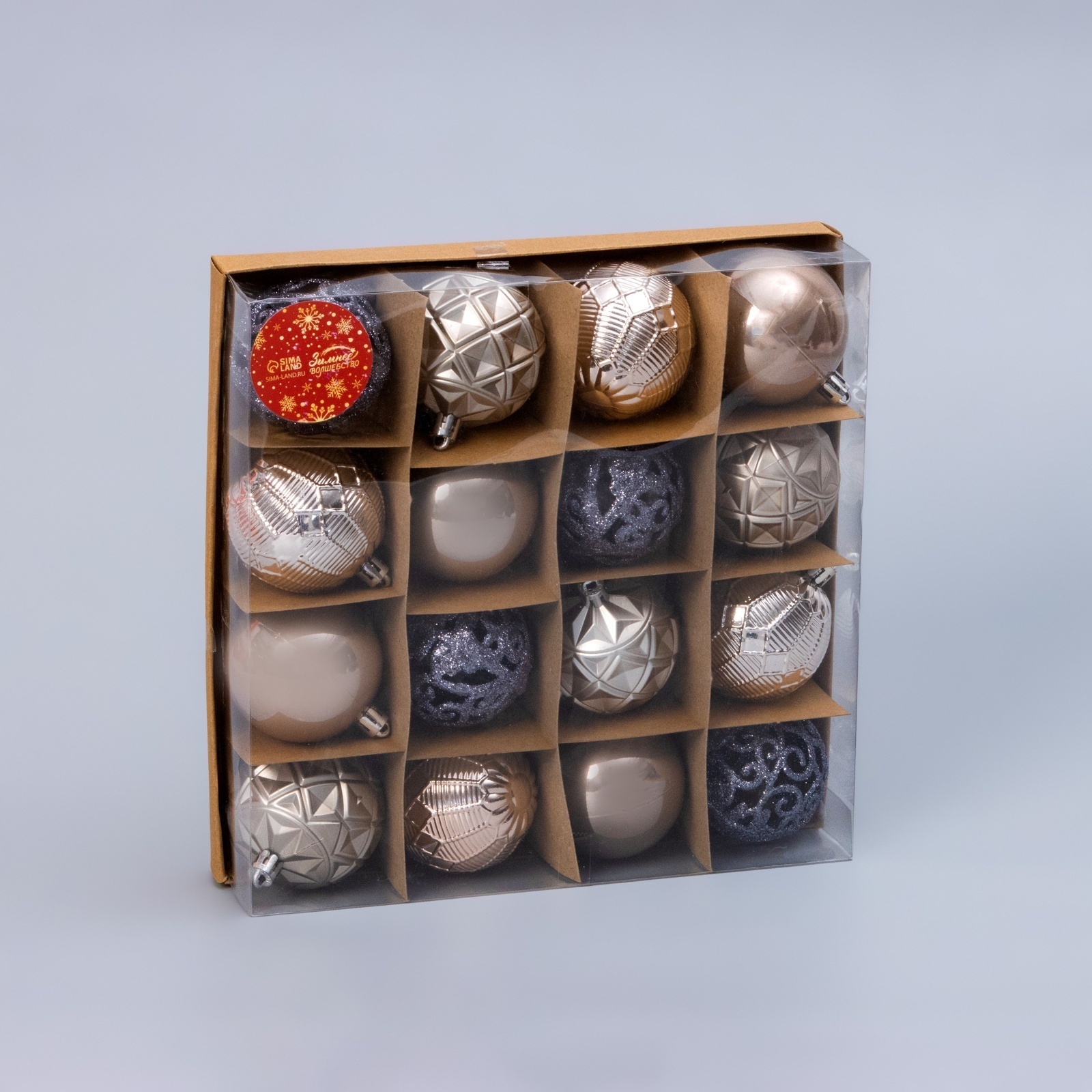 !09 Набор елочных игрушек - Ёлочные игрушки «Винтажный узор», шары новогодние, d=6 см, набор 16 шт., МИКС