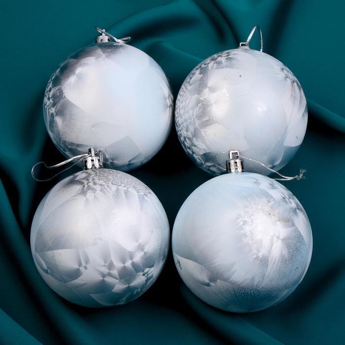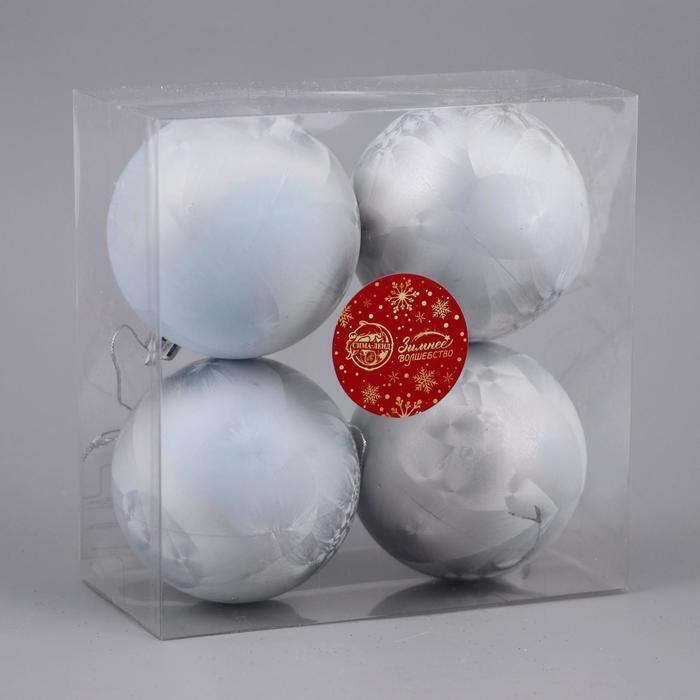 !09 Набор елочных шаров (набор 4 штуки) «Туман» пластик d-8 см. цвет голубой