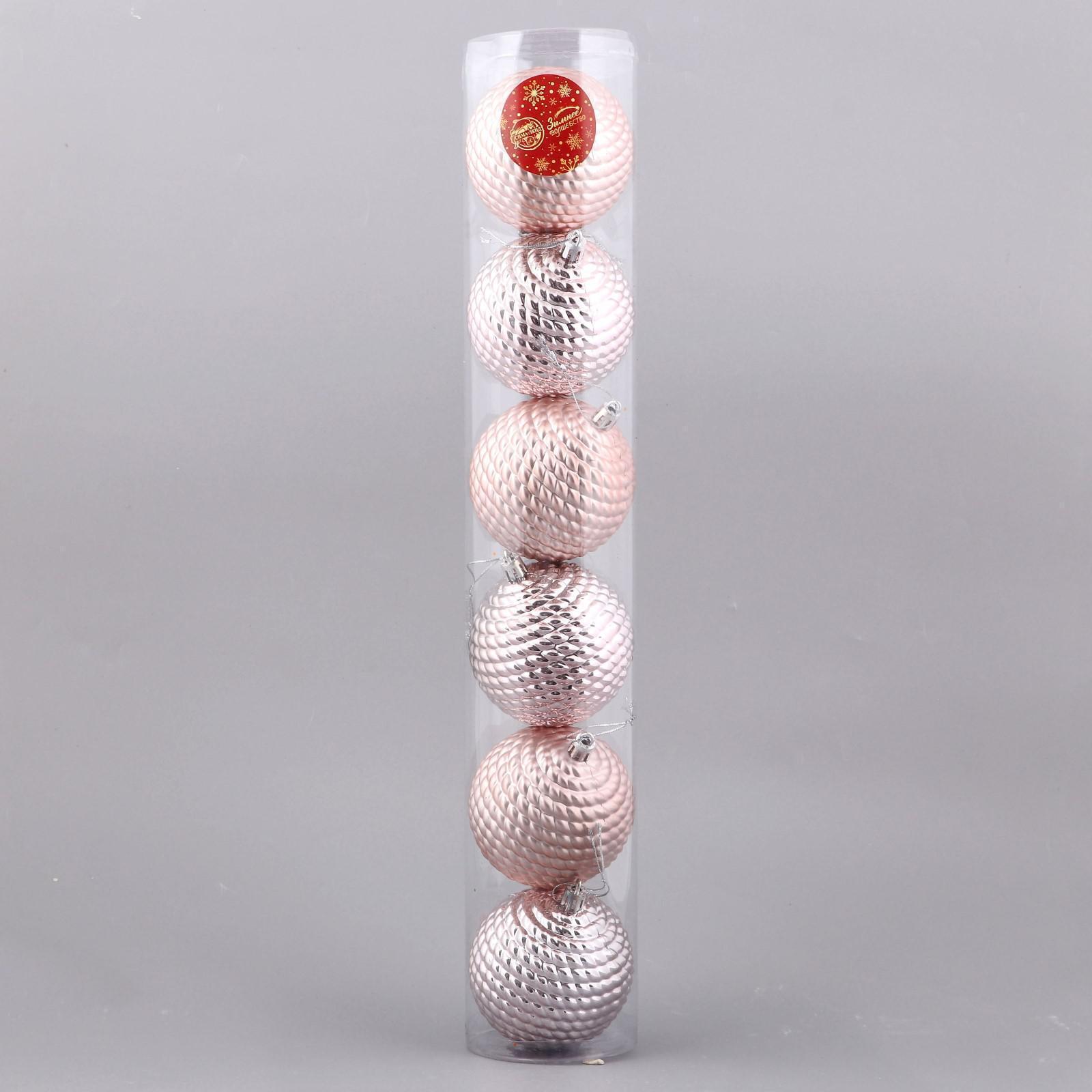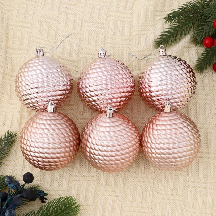 !09 Набор елочных шаров (набор 6 штук) «Грация-грани», d=8 см, цвет розовое золото