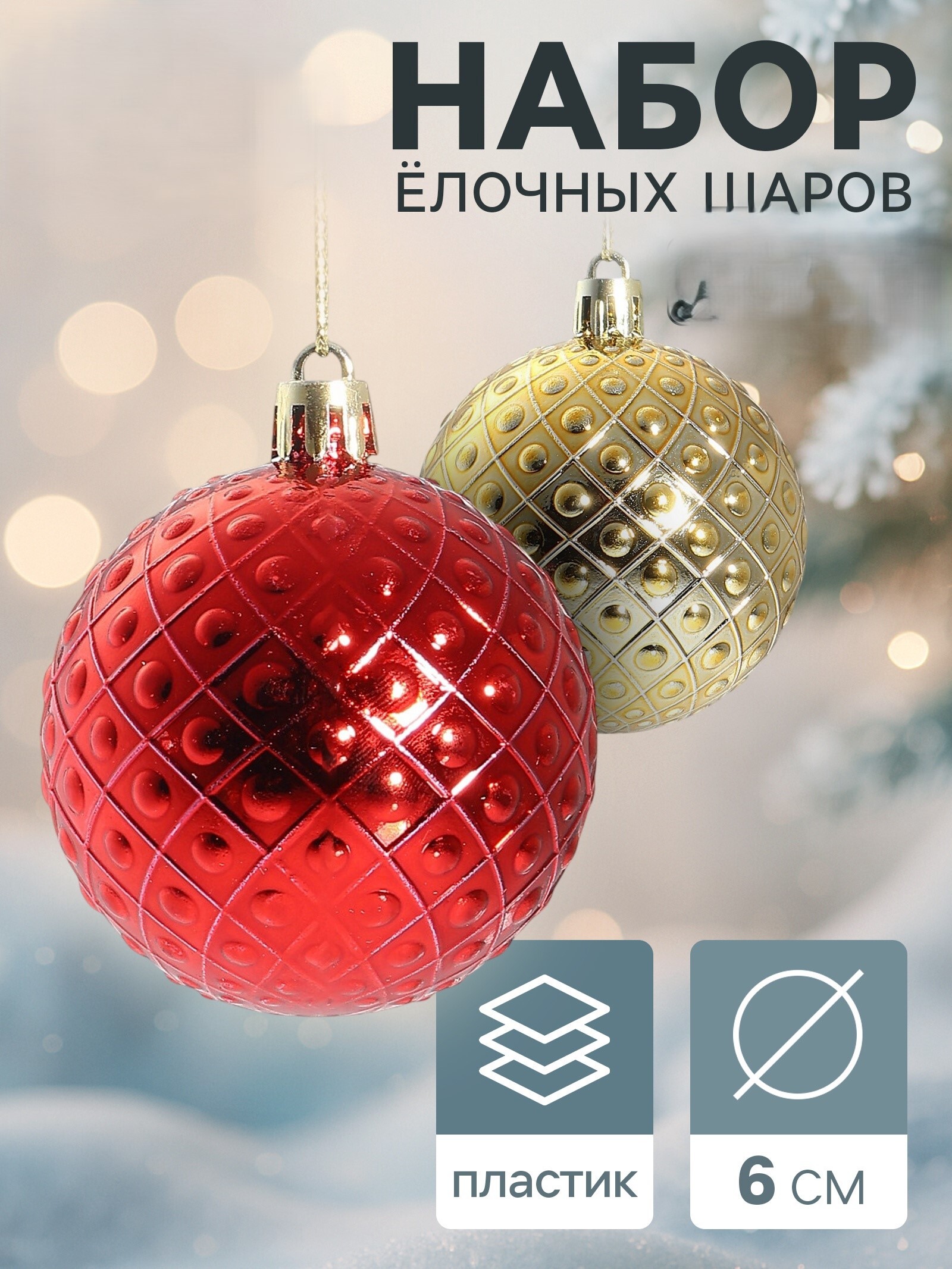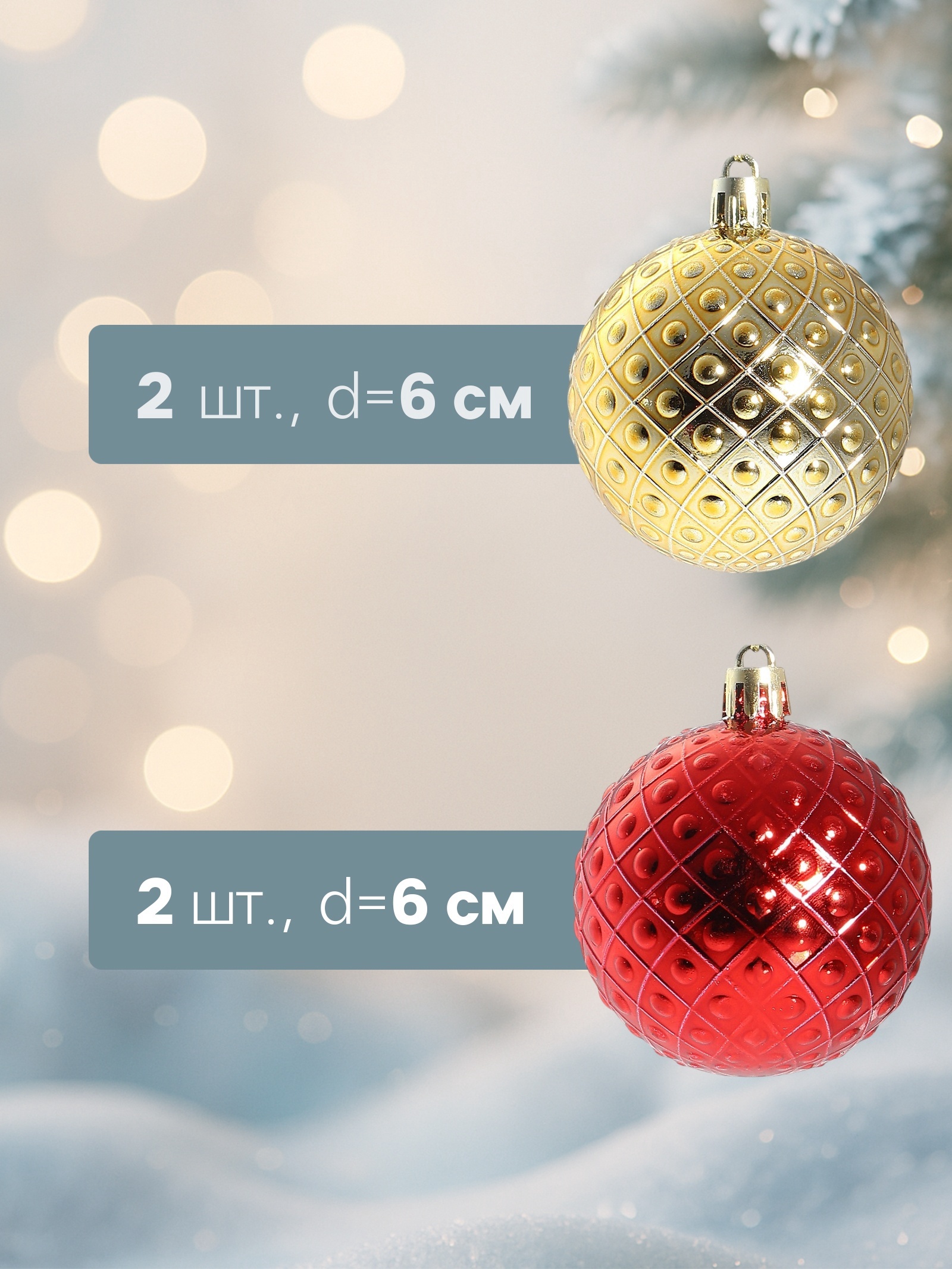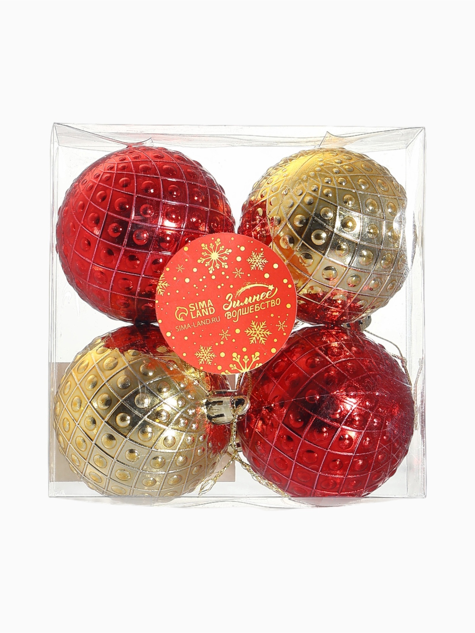 !09 Набор елочных шаров (набор 4 штуки) «Оливия», d=6 см, цвет красно-золотой