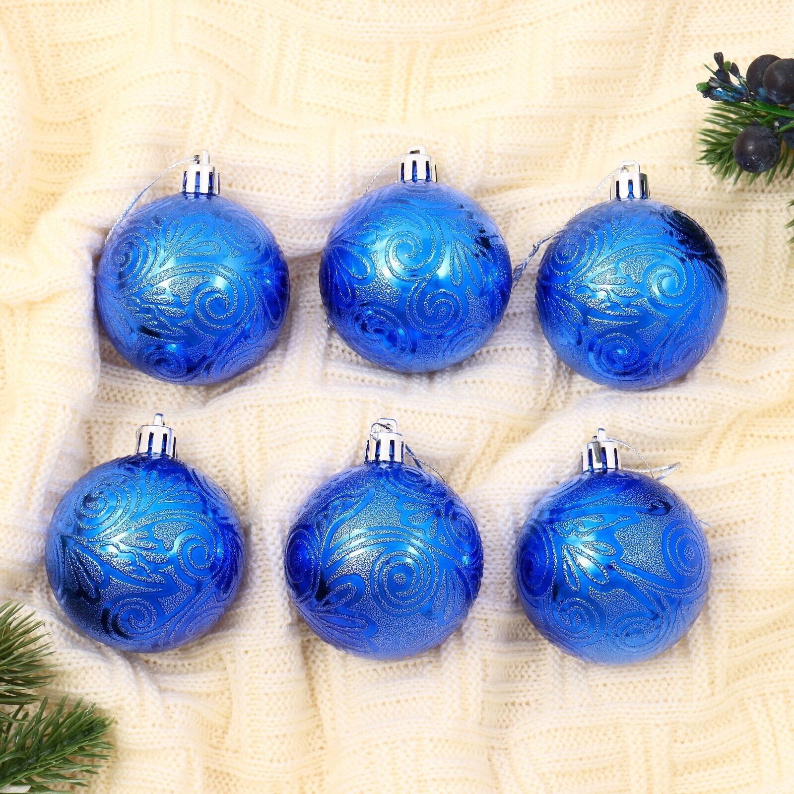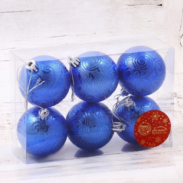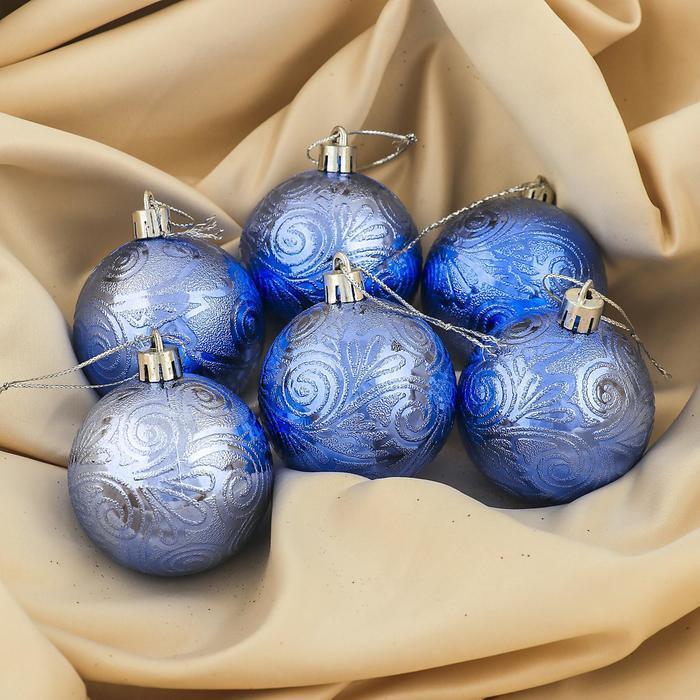 !09 Набор елочных шаров (набор 12 штук) "Кружевной узор", d=6 см, цвет синий
