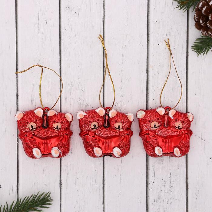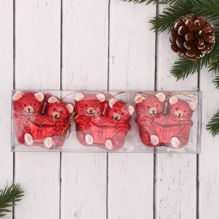 !09 Набор елочных украшений (набор 3 штуки) "Дружные медвежата", 6x5,5 см, цвет красный