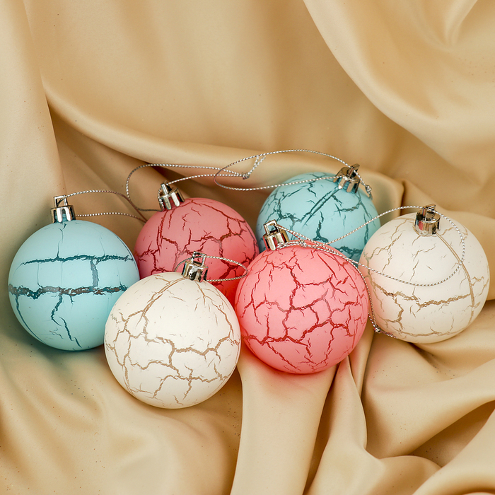 !09 Набор елочных шаров (набор 12 штук) "Кракле" пластик d-6 см. цвет микс