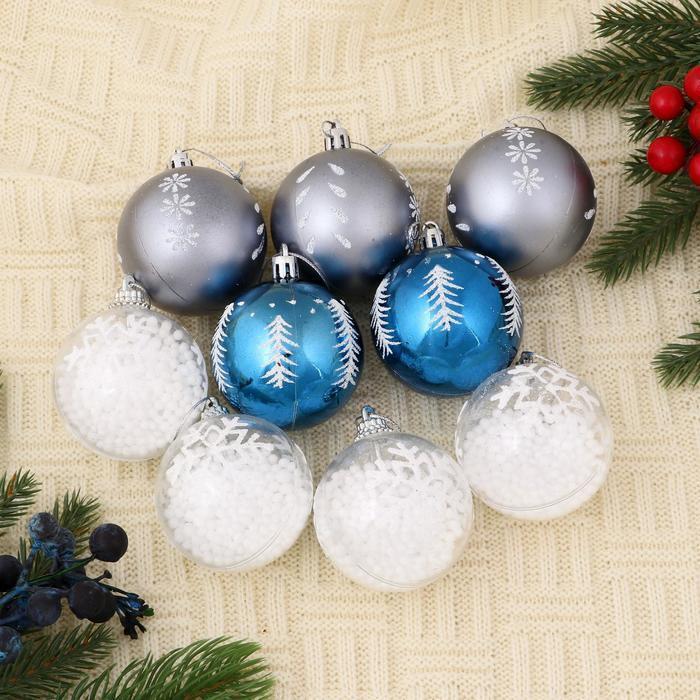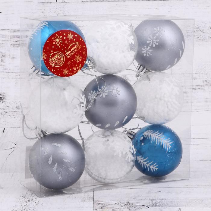 !09 Набор елочных шаров (набор 9 штук) "Снежный" пластик d-6 см.