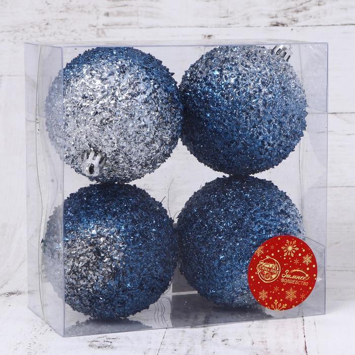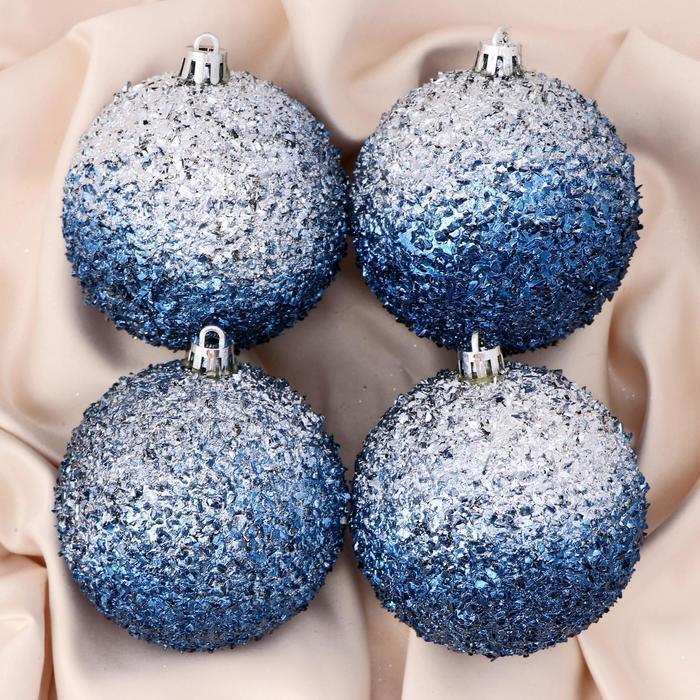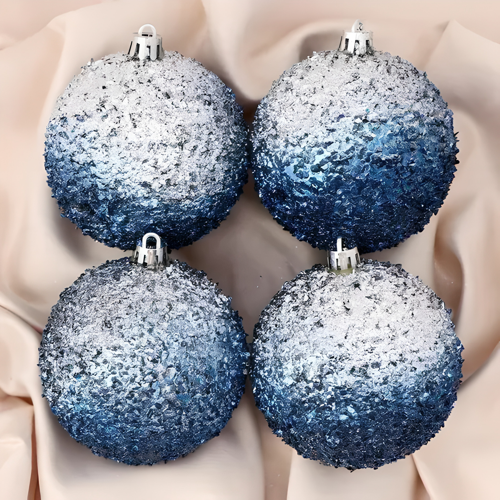 !09 Набор елочных шаров (набор 4 штуки) "Идэн", d=8 см, цвет серебристый/синий