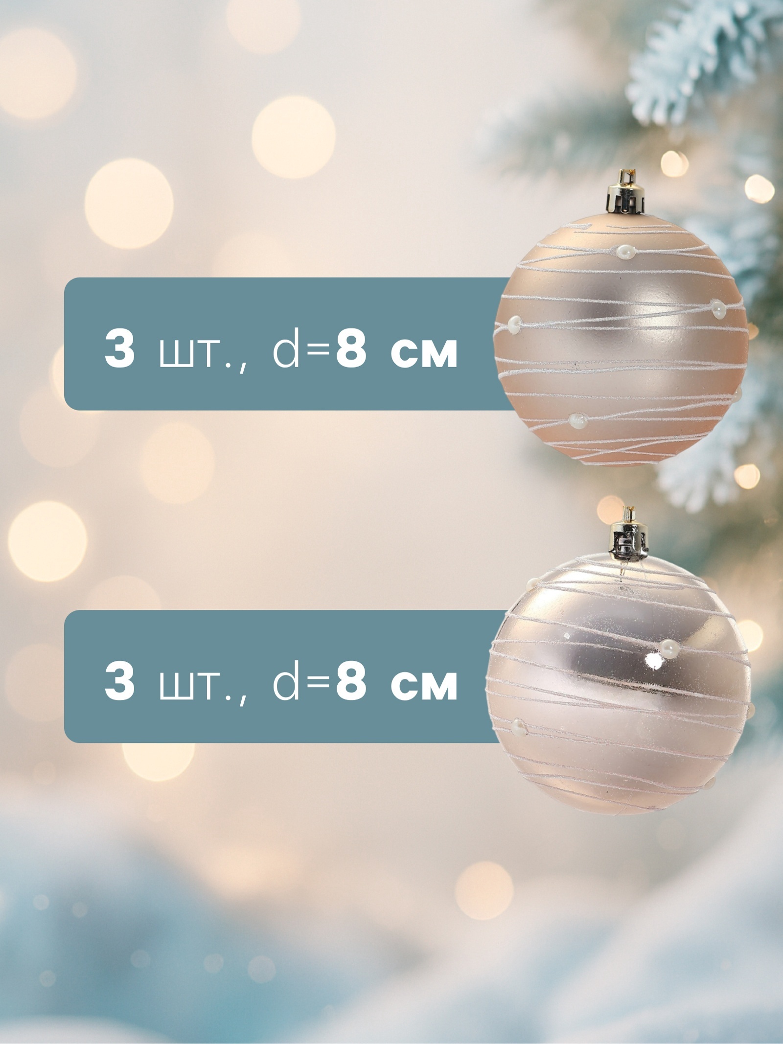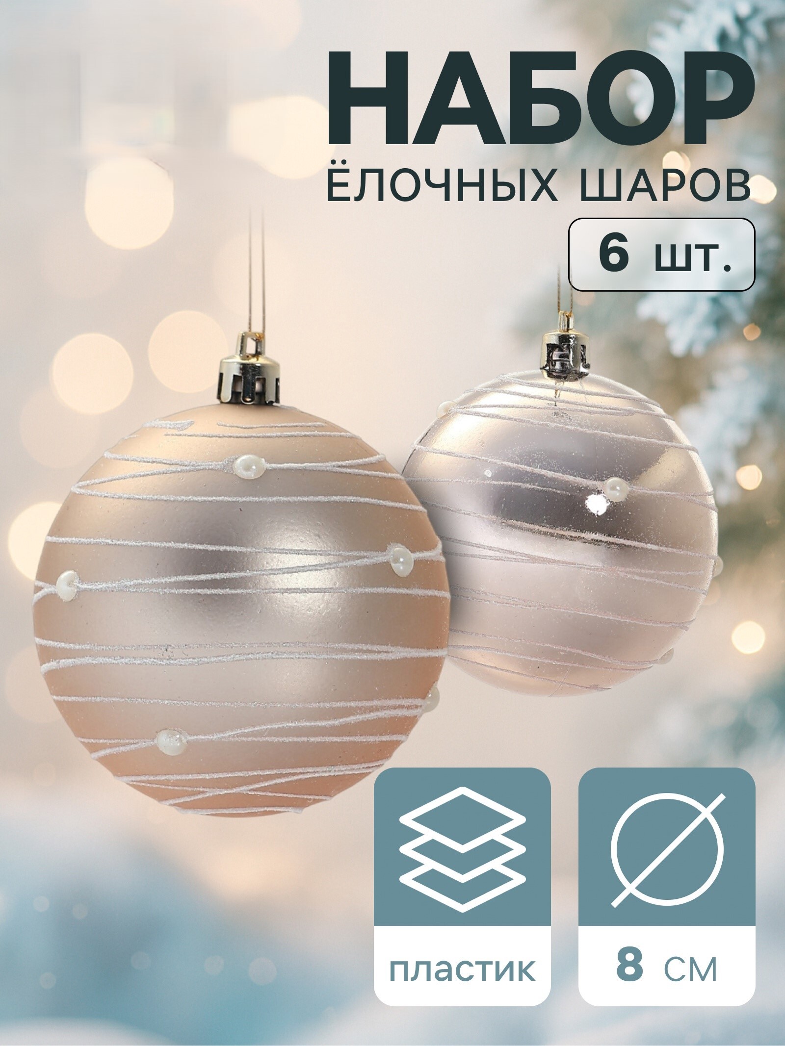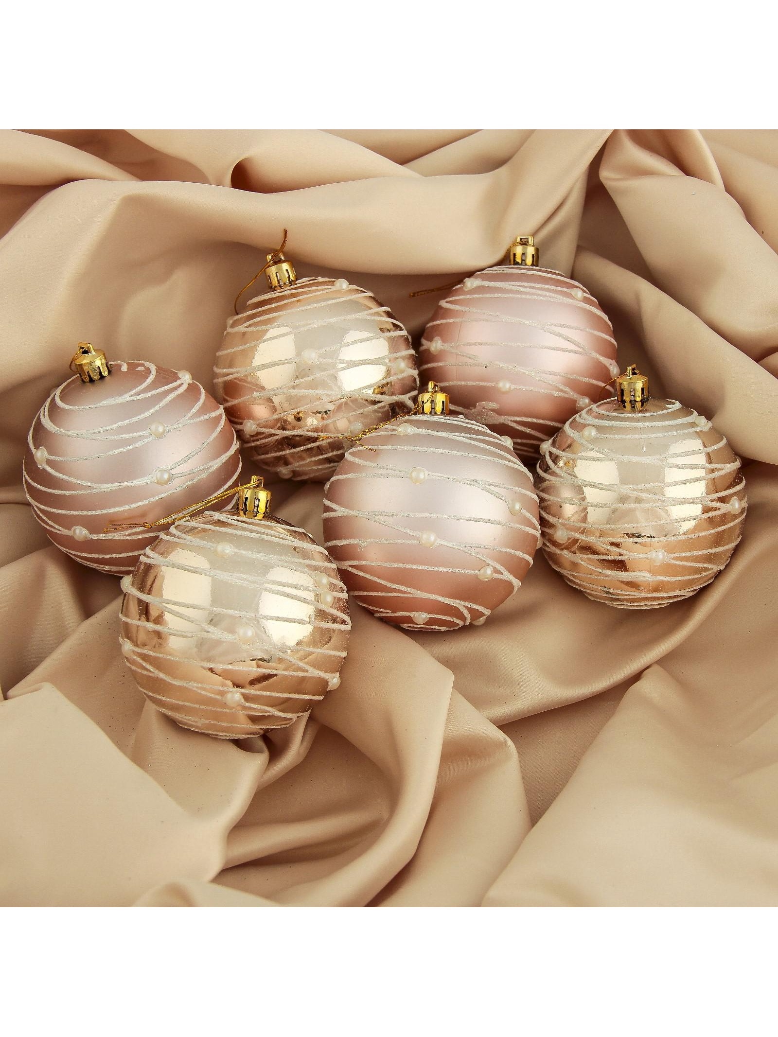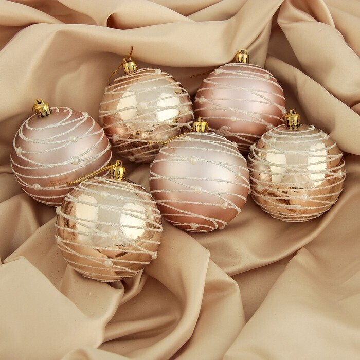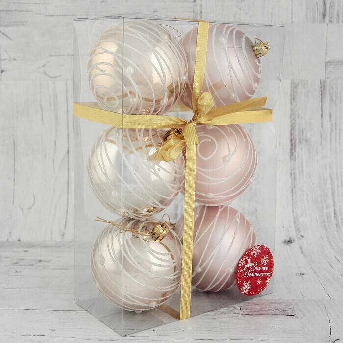 !09 Набор елочных шаров (набор 6 штук) "Жемчужный орион", d=8 см, цвет кремовый