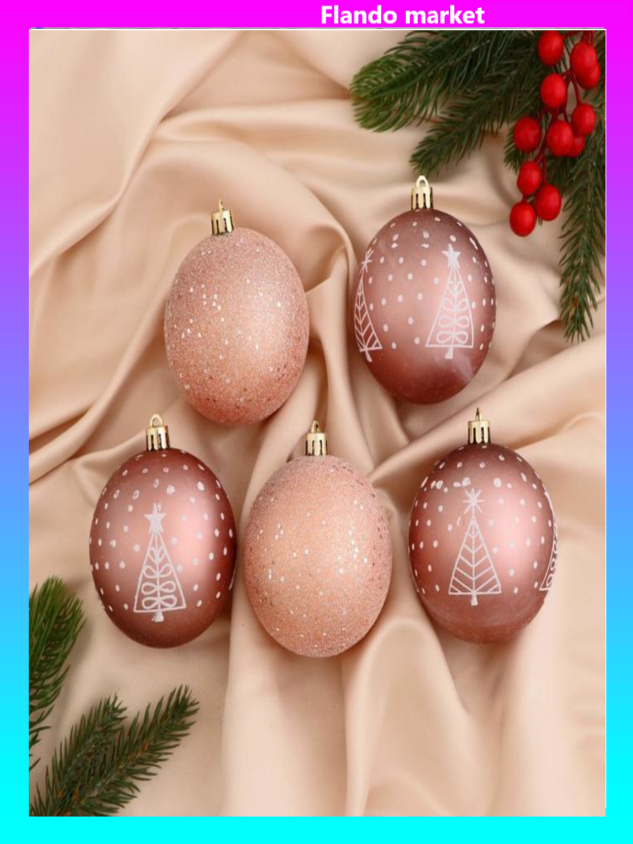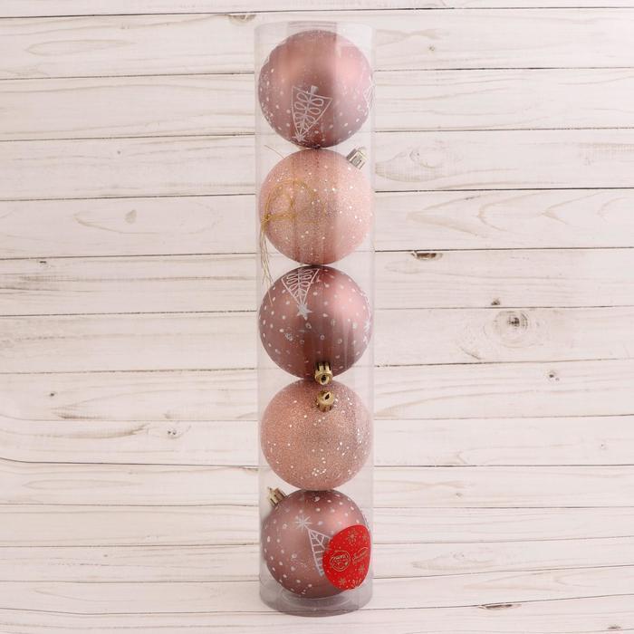 09 Набор елочных шаров (набор 5 штук) "Елочка" пластик d-8 см. цвет коричневый микс